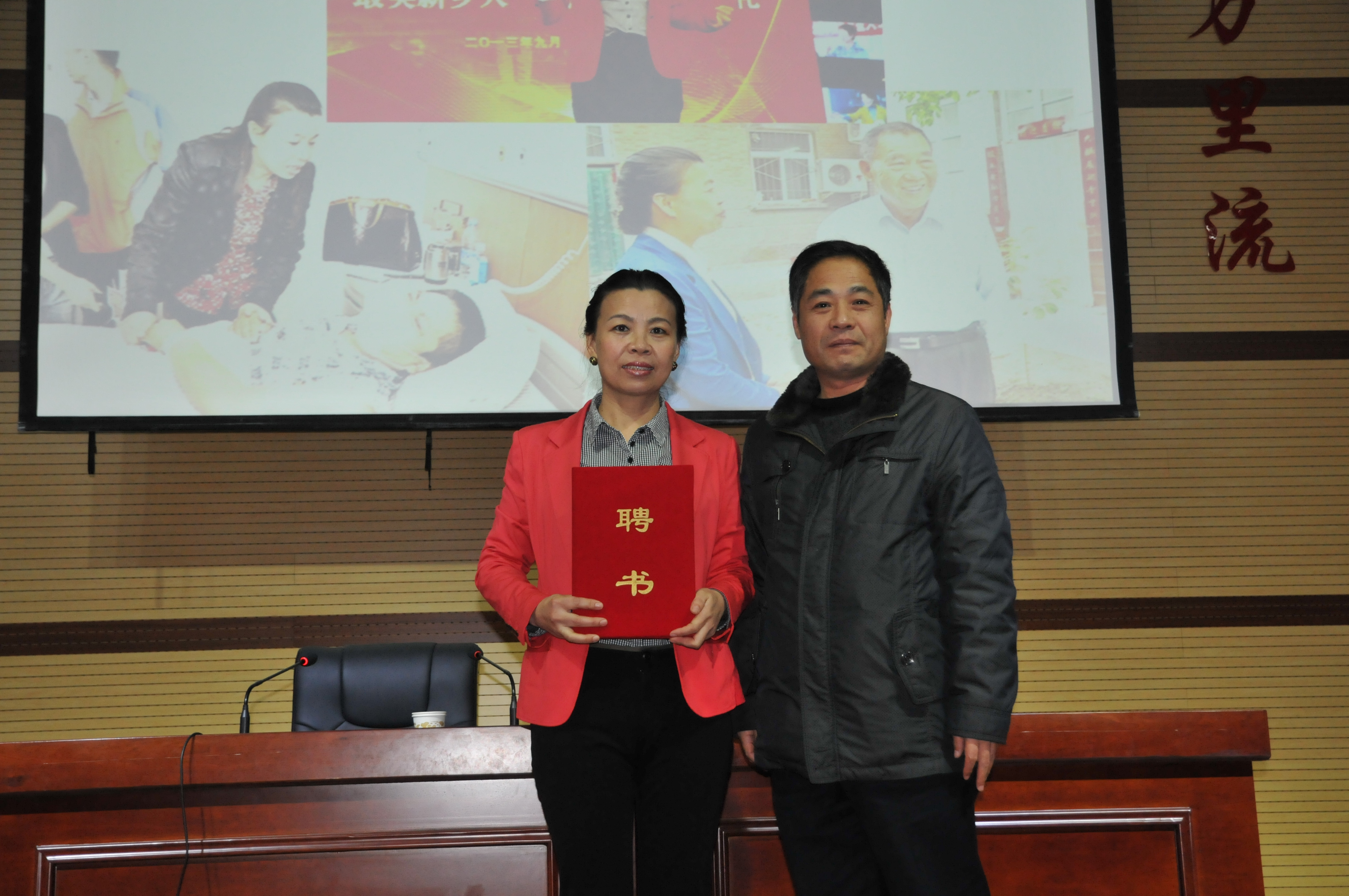 本期学道德模范环节共分为两个部分,分别是“看模范视频”和“听模范报告”。全体师生先共同观看了本期主讲人:2013年“最美新乡人”,新乡市王氏集团副总经理王玉玲的动人事迹,随后由王继民副校长为其颁发了河师大附中道德讲堂特邀讲师聘书。