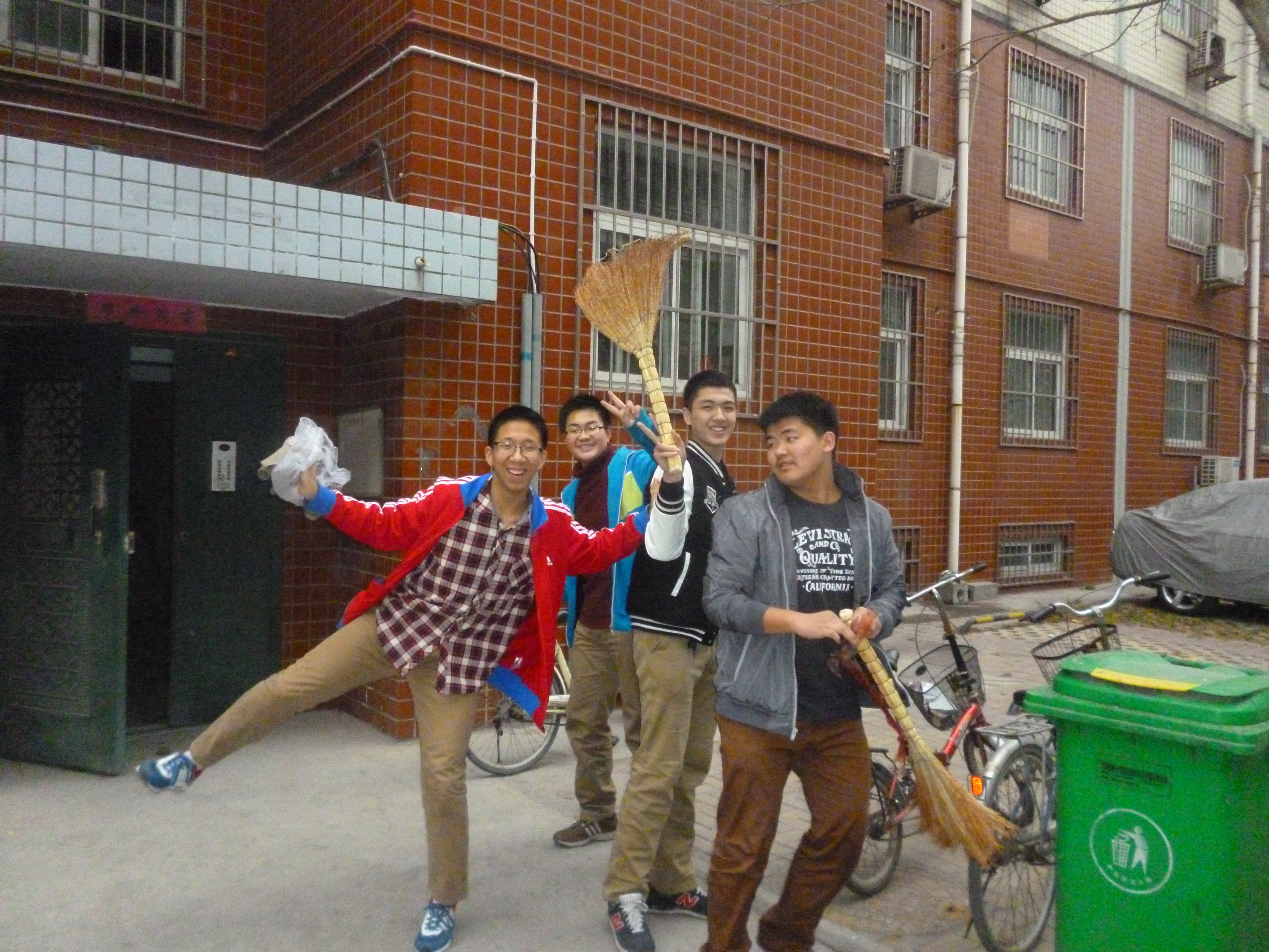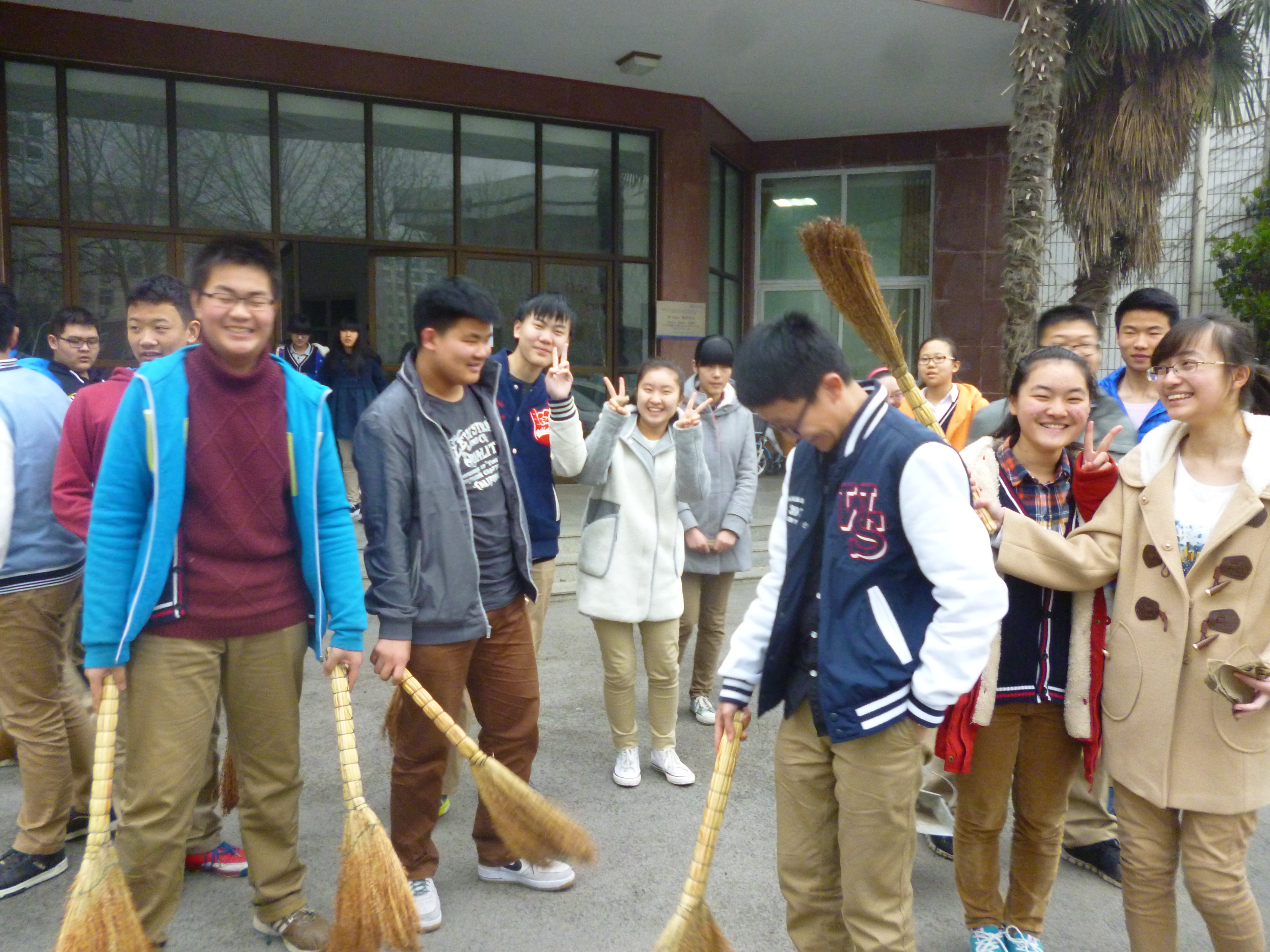 3月17日下午五点,伴随着贵如油的春雨和略带寒意的春风,高一欧美40名学子在国际部楼前集合完毕。班主任郭江伟和万月老师带领他们在我校西校区家属院进行了一次“学雷锋月义务劳动”的活动。