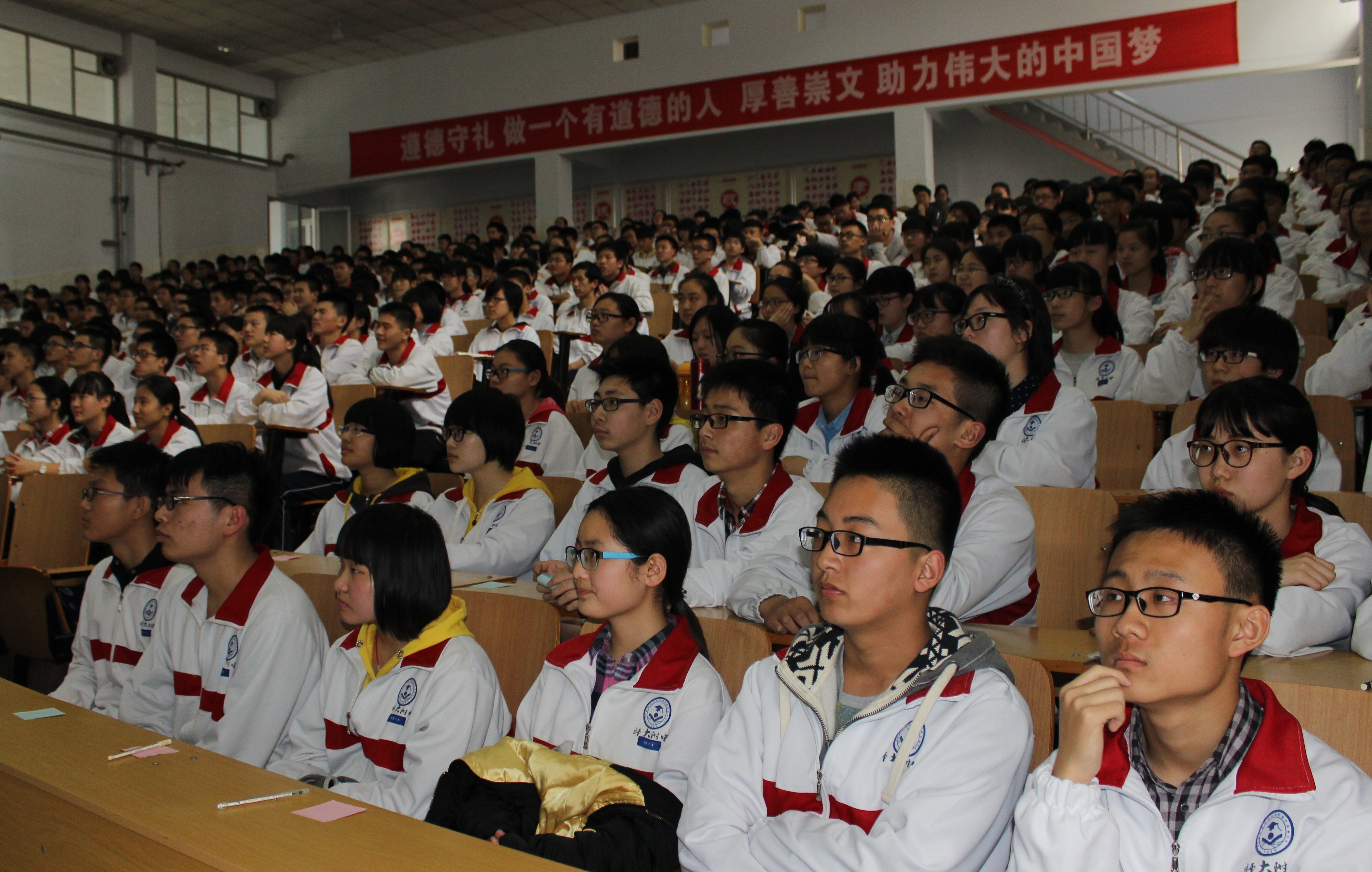 2015年3月30日下午,主题为“自强不息,走向成长”的河南师大附中第19期道德讲堂开讲。校党委书记杨宝刚、团委书记杨呈杰等学校领导及高一本部全体师生共同参与。本期道德讲堂由高一本部承办。