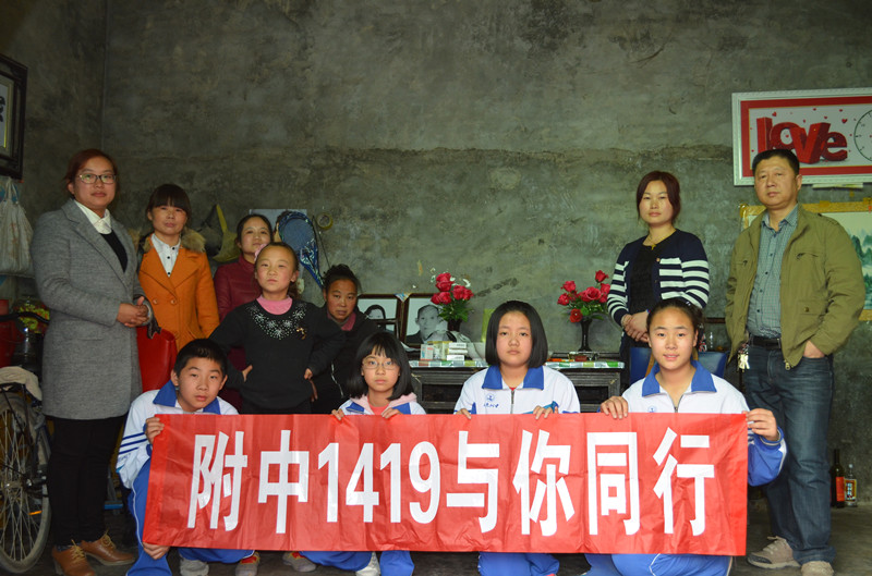 2015年3月21日,新学期伊始,带着全班同学的牵挂,四名学生及家长代表第三次来到郭丽家。学生及家长代表带去了同学们所捐的衣物、生活用品、学习用具等。我们希望初1419班的微薄之力能给她们母女带去春的温暖,我们初1419班的全体师生及家长将与郭丽共同承担风雨,迎接彩虹。