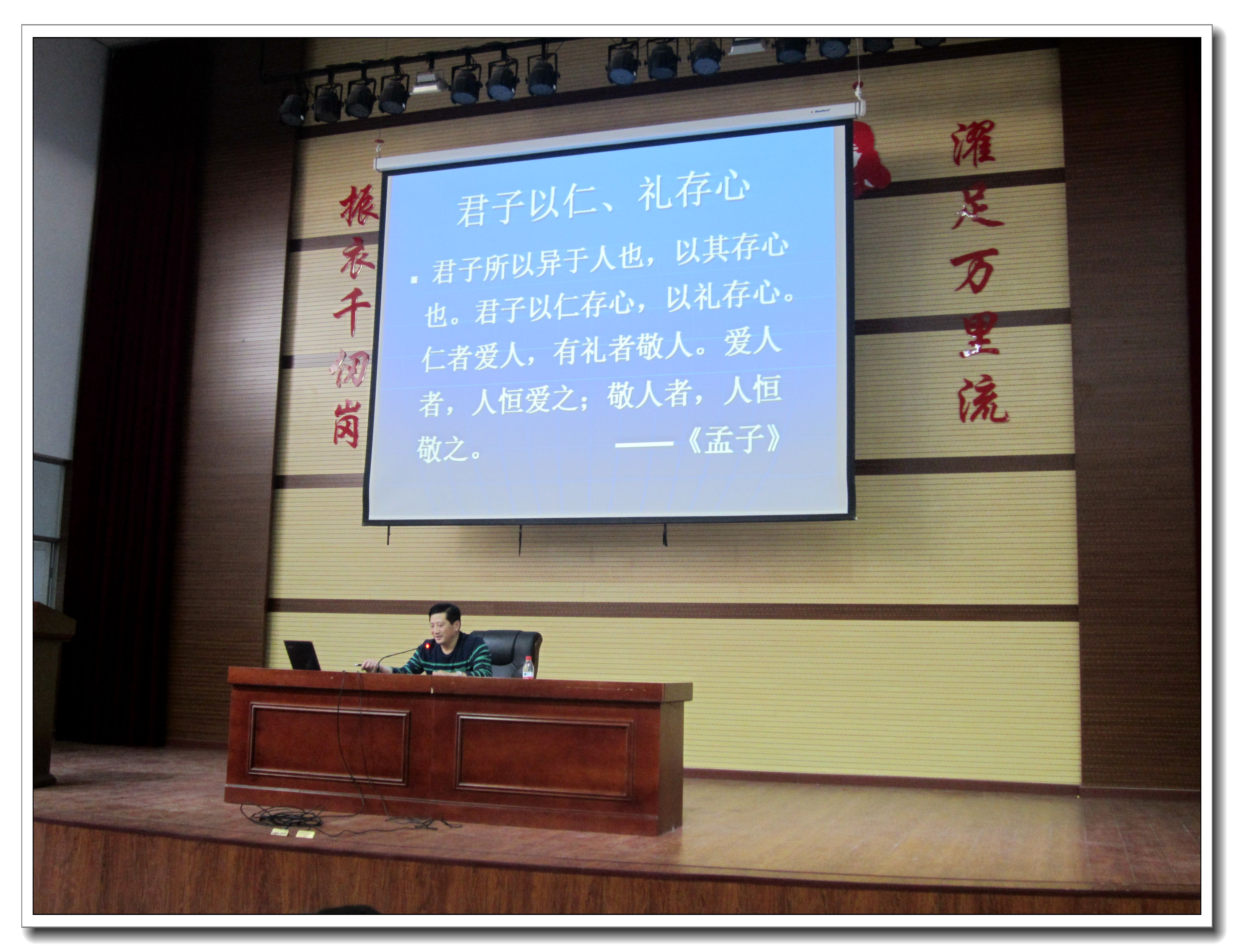 随着音乐声的结束,本期道德讲堂迎来了河南师大附中德高望重的王颖彬老师作为道德模范为全体师生讲述中华礼仪道德。王老师以“华夏”的由来及深意作为开场,从“礼”和“诚”两个大的方面,引经据典,深入浅出,用生动典型的事例、鲜活通俗的语言、喜闻乐见的形式为大家上了一堂精彩的礼仪道德课,使同学们受益匪浅。在王老师开讲的过程中,全体师生不由自主地传来阵阵掌声,同学们激情澎湃,热情高涨。