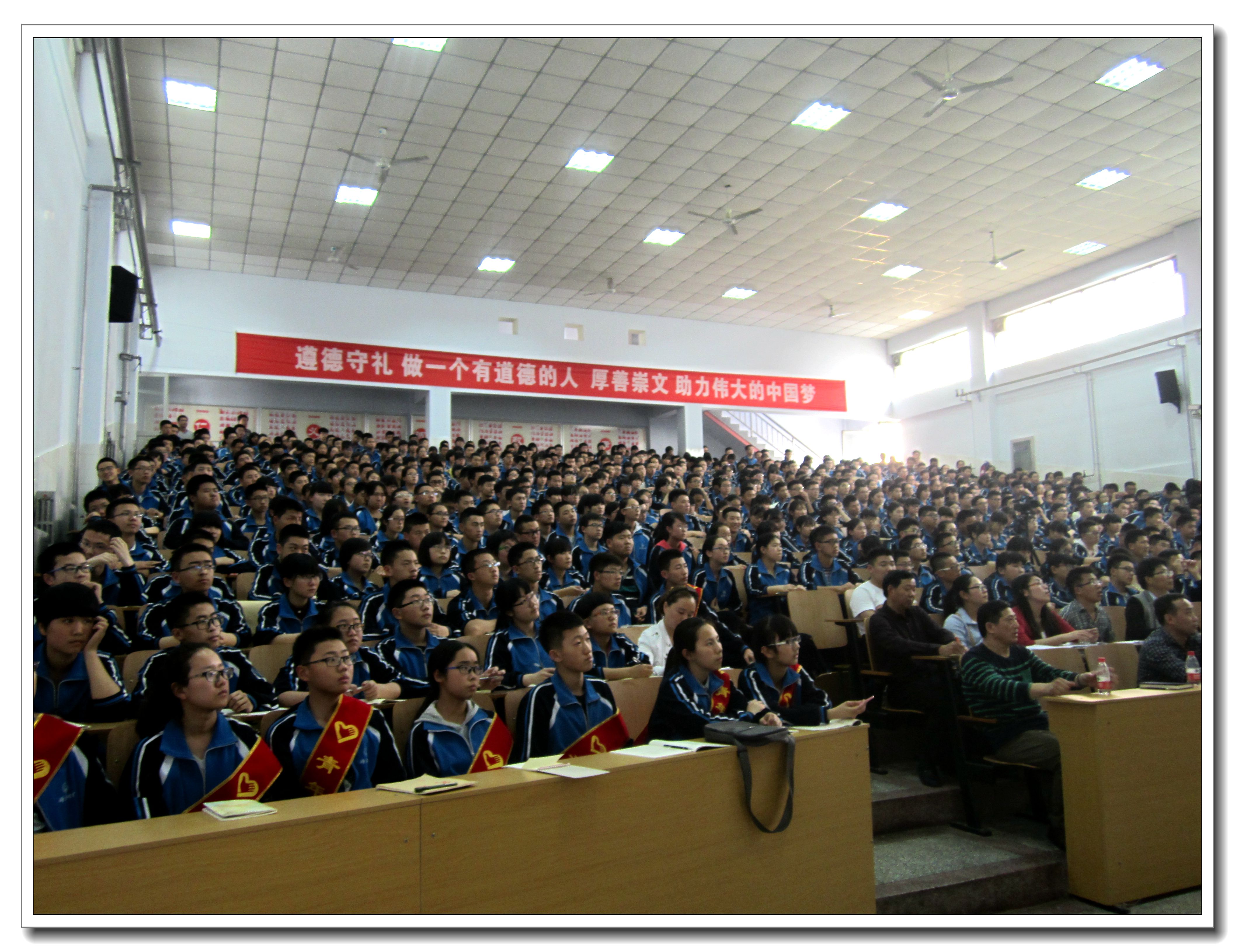 2015年4月27日下午,河南师大附中第20期道德讲堂开讲。本次道德讲堂由金龙高一年级承办,主题为“弘扬传统文化,践行文明礼仪”。学校党政领导及金龙高一年级全体师生共同参与了本次活动。