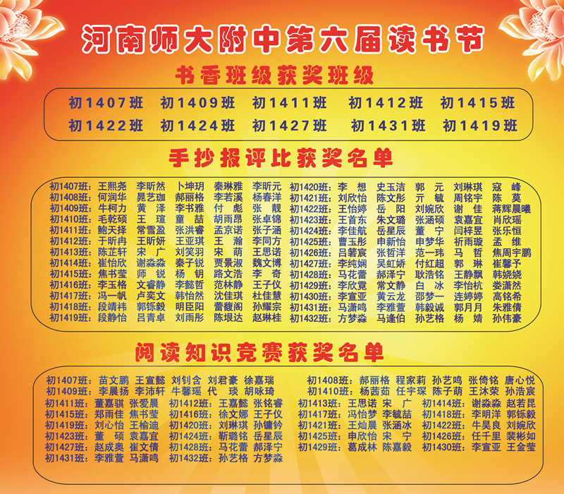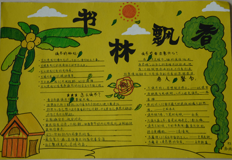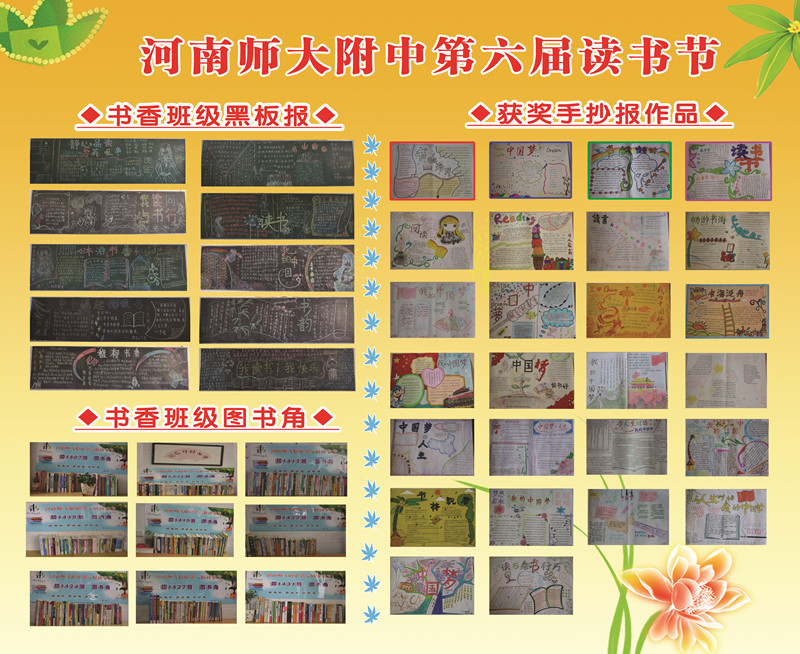 金龙初一年级按照学校《关于举办第六届读书节活动的通知》要求,由年级领导牵头,班主任和语文老师积极配合,发动和组织学生在充分阅读的基础上,将自己的阅读所得、人生感悟以及生命体验,通过手抄报的形式展示出来,并在小组、班级、年级内交流读书所得。