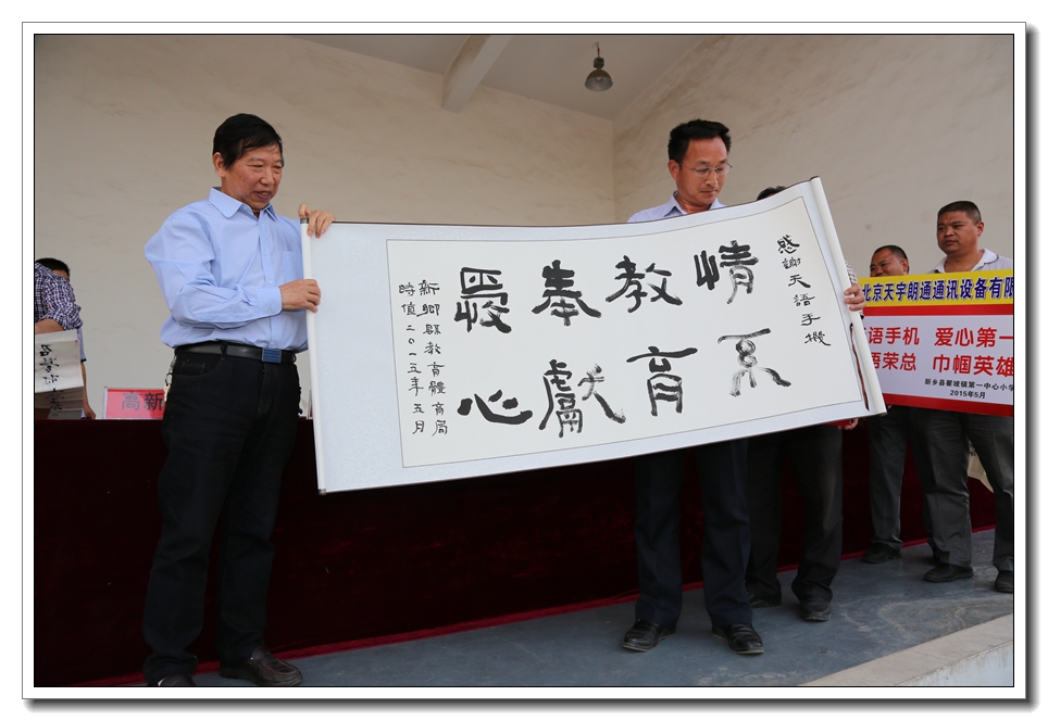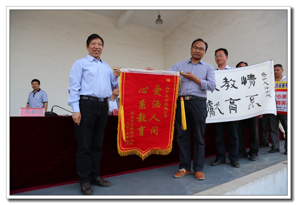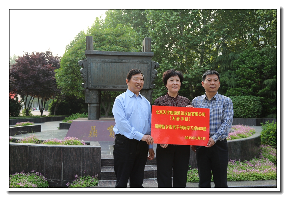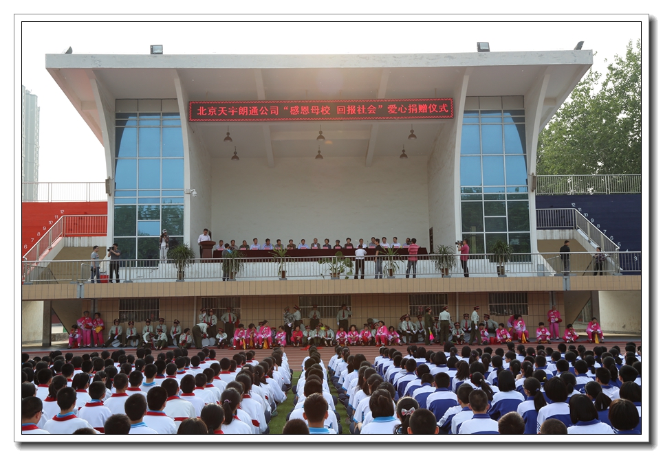 阳春布德泽,万物生光辉。5月4日下午,我校1979届校友、北京天宇朗通通讯设备有限公司董事长荣秀丽女士向母校及家乡爱心捐赠活动仪式在学校大操场隆重举行。 捐赠仪式上,刘黎校长发表了热情洋溢的致辞。刘校长对荣秀丽校友及北京天宇朗通通讯设备有限公司的爱心善举给予了高度评价和衷心感谢,同时也鼓励全体同学以优秀校友为榜样,勤奋学习,拼搏进取,常怀感恩,回报社会。河南师大附中京津冀校友会顾问、附中金龙学校校长侯福祥是荣秀丽校友的中学老师,此次做为北京天宇朗通通讯设备有限公司及荣秀丽校友的代表介绍了捐赠活动的有关情况。此次捐赠以“感恩母校,回报社会”为主题,共捐可用于阅览室、实验室和第二课堂活动的桌椅赠4013套,新乡市老年大学、辉县市教育局、卫辉市教育局、原阳县教育局、高新区等18家单位受赠,5月3日已分发到位。 受赠单位代表新乡市老干部局局长王凤贤以及在校生代表高一三班李慧先后发言。新乡市老年书画院的老同志为表达谢意现场创作多幅书画作品回赠北京天宇朗通通讯设备有限公司。 原市委副书记、新市教育基金会名誉主席茹银格,原市人大常委会副主任、新乡市关工委名誉主任王玉堂,原市政协副主席、市关工委执行主席王平双,市老干部局局长王凤贤、副局长尚增轩,北京天宇朗通通讯设备有限公司代表侯福祥,我校校长刘黎及受赠单位代表在主席台就坐,高一年级和初一年级的三千余名师生参加了捐赠活动。