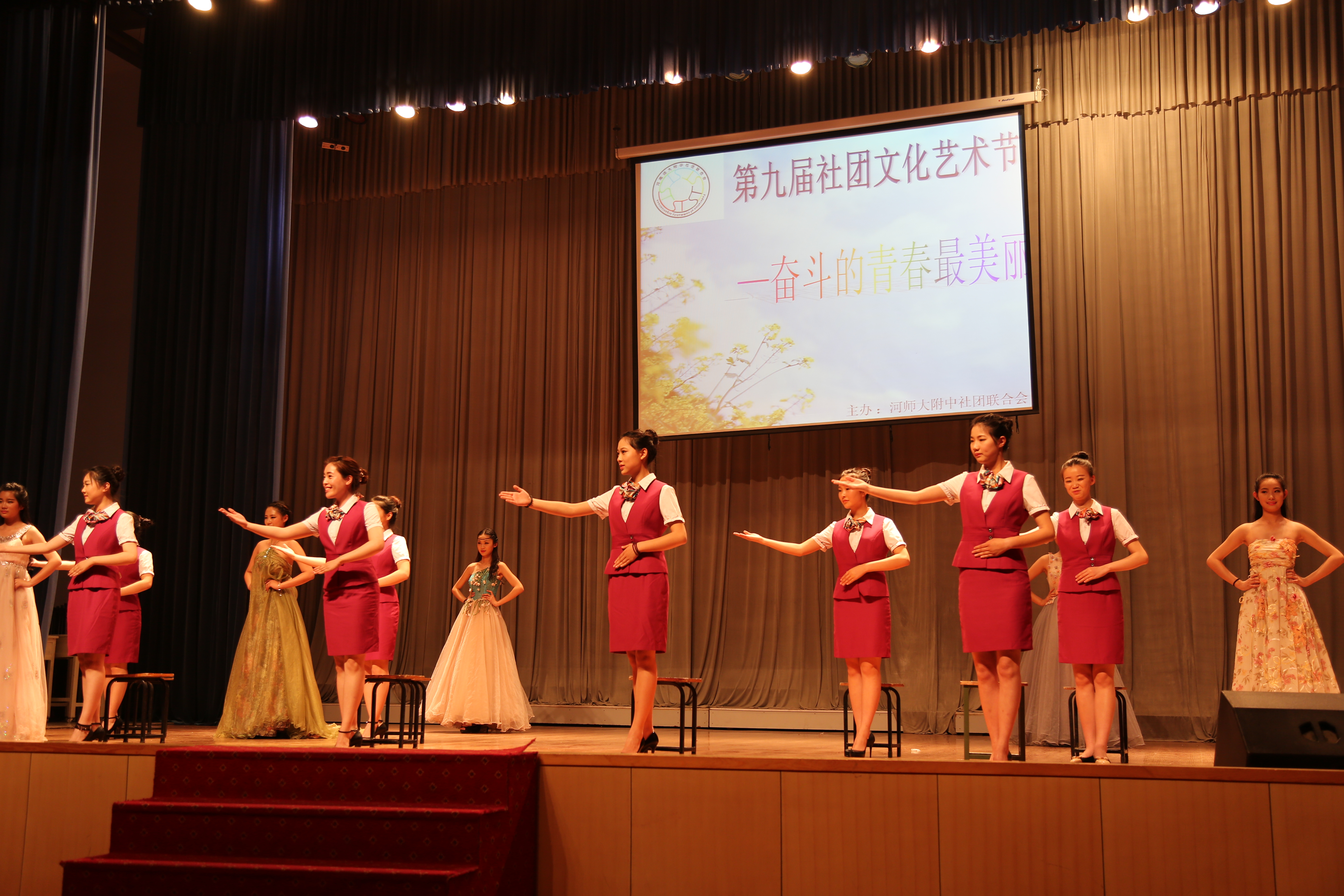 模特礼仪社的同学们一场完美的T台走秀,配合同样精彩的礼仪文化展示,再一次展现了附中学子昂扬向上的精神面貌,点燃了现场氛围,将晚会推向了高潮;