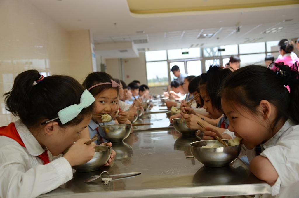 低年级学生有秩序的就餐