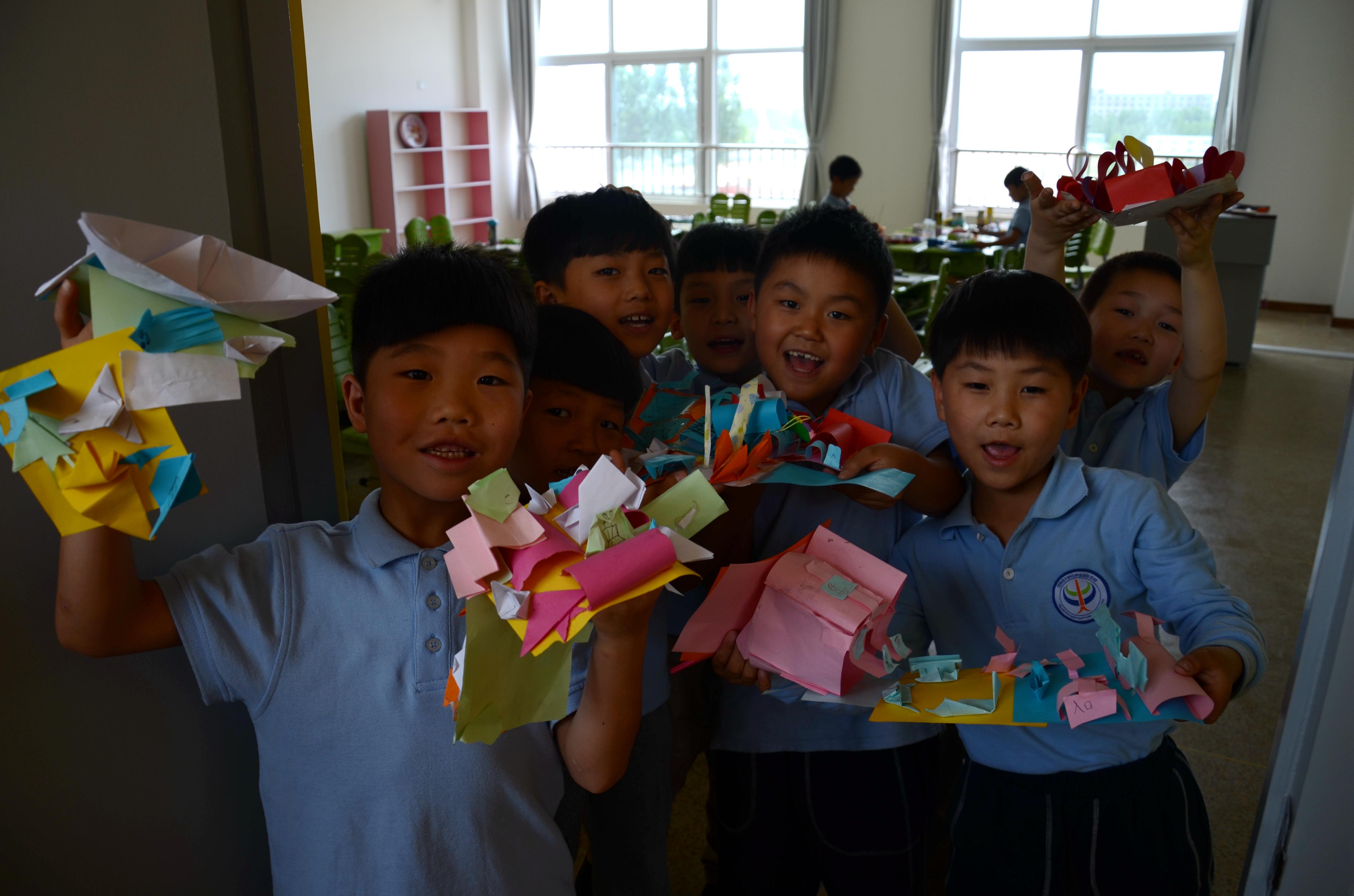 学生们展示手工作品