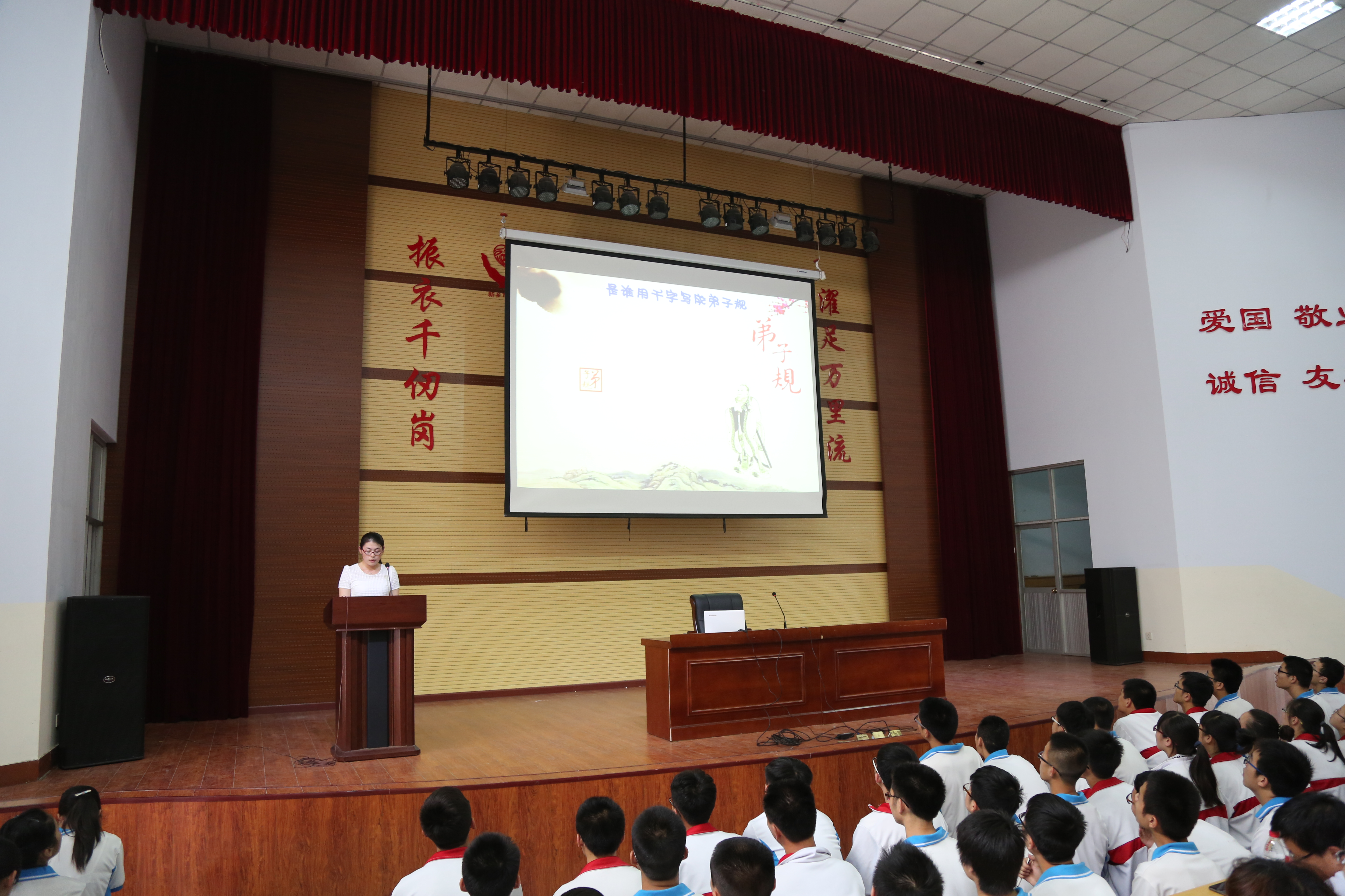本期道德讲堂由曹亚老师主持,共有主要包括“省己身、听歌曲、学模范、诵经典、发感悟、送吉祥”等六个环节。首先曹亚老师请同学们思考两个问题:在过去的生活中,你是否做到了“己所不欲,勿施于人”?在未来的生活中,你如何践行“己所不欲,勿施于人”?同学们进行了1分钟的静默反省。接着,全体师生认真聆听了《弟子规》。“是谁用千字写成弟子规,在这尘世间善行当赞美。”爱人者,人恒爱之;敬人者,人恒敬之。音乐结束后,进入学模范的环节。本期道德讲堂请来了一位大智之士、大贤之师,河南师大附中德高望重的王颖彬老师为全体师生讲述《论语》中的经典语句“己所不欲,勿施于人”。王老师以《论语》的“论”字的具体含义为开场,讲述了“仁”和“恕”,引用古今中外的典型事例,用鲜活通俗的语言为大家上了精彩的一课,使同学们受益匪浅。在王老师讲解的过程中,不时传来阵阵掌声,同学们激情澎湃,热情高涨。