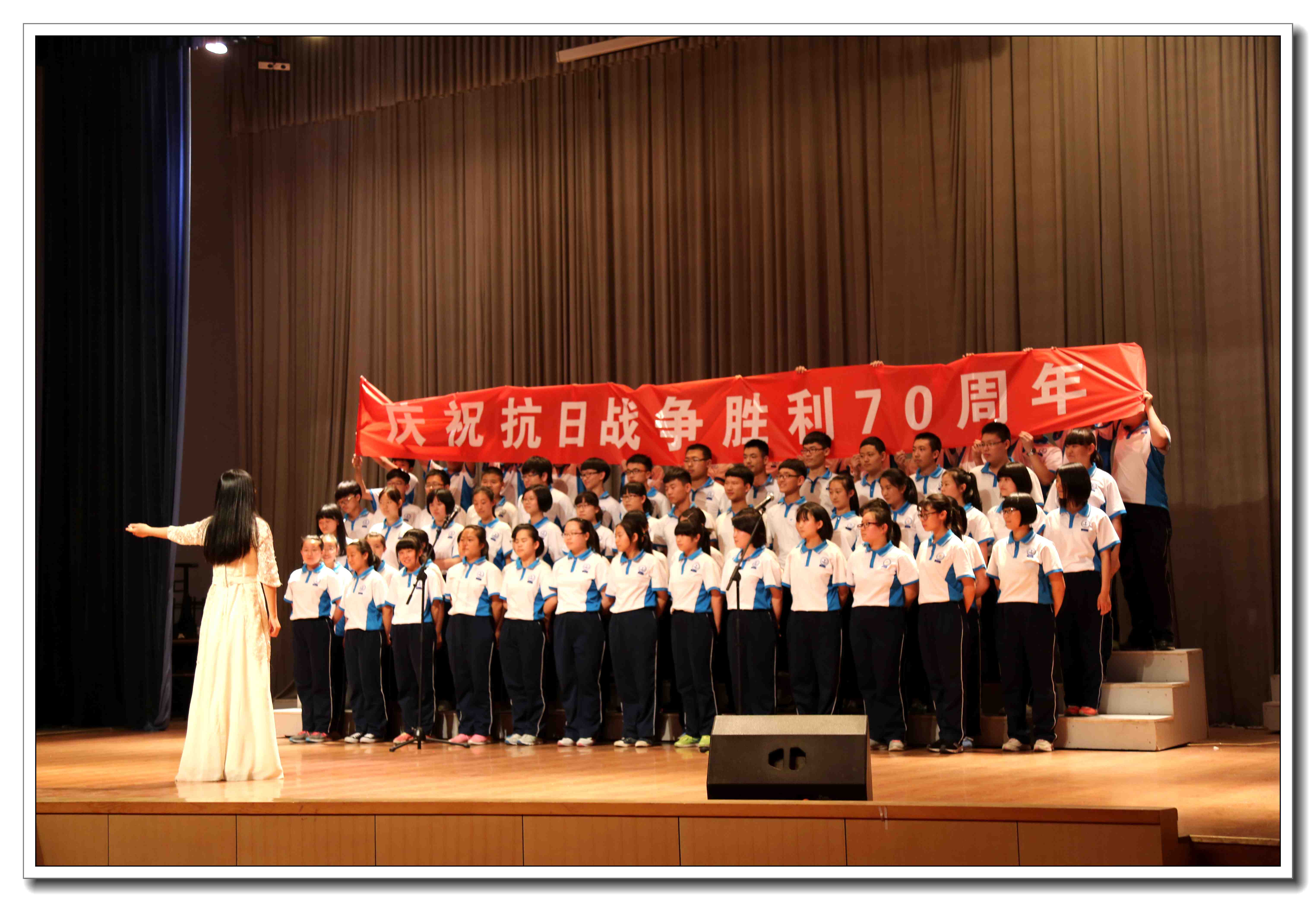 今年是抗日战争和世界反法西斯战争胜利70周年,为纪念英雄的丰功伟绩,激励我校学生的思想道德健康成长,增强班级凝聚力,我校举办了“唱响红歌”歌咏展演活动,此次活动由校团委主办、高一年级承办。此次活动共分为三个阶段。第一阶段为红歌传唱。各班组织学生在音乐课和每日下午上课前唱歌时间练习团歌和自选红歌。在班主任老师和音乐老师的尽心组织和精心训练下,同学们积极参与,在提高了音乐素养的同时,也深深感受到了红歌的魅力。