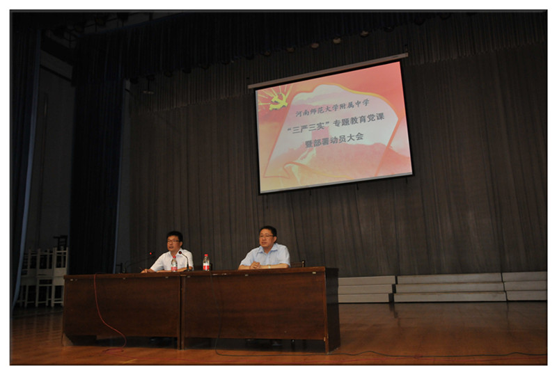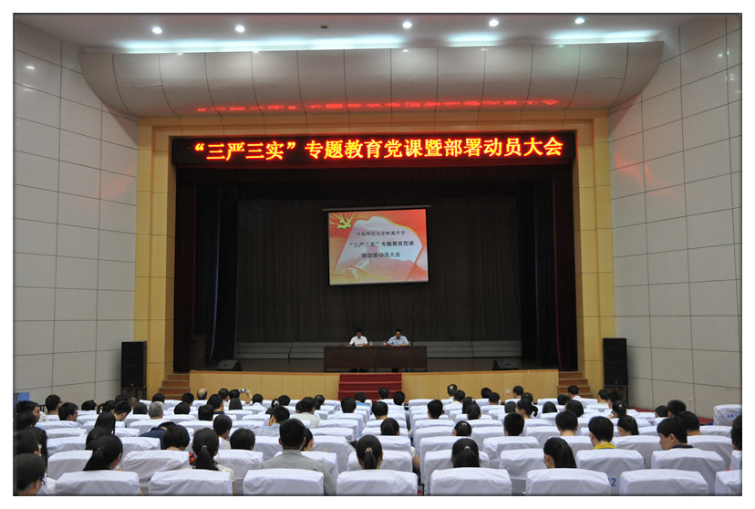 根据师大党委的统一安排,6月9日下午,我校召开了“三严三实”专题教育党课暨部署动员会,深入学习贯彻上级专题教育工作会议精神,安排部署我校“三严三实”专题教育活动。此次部署动员会由校长刘黎主持。全体党员参加了会议。