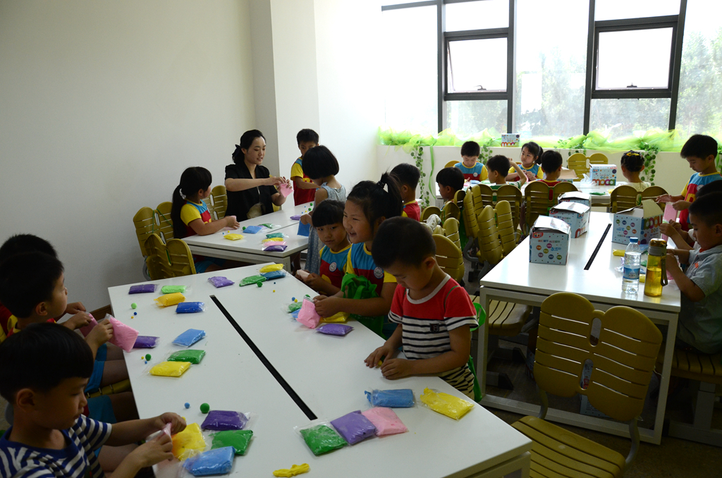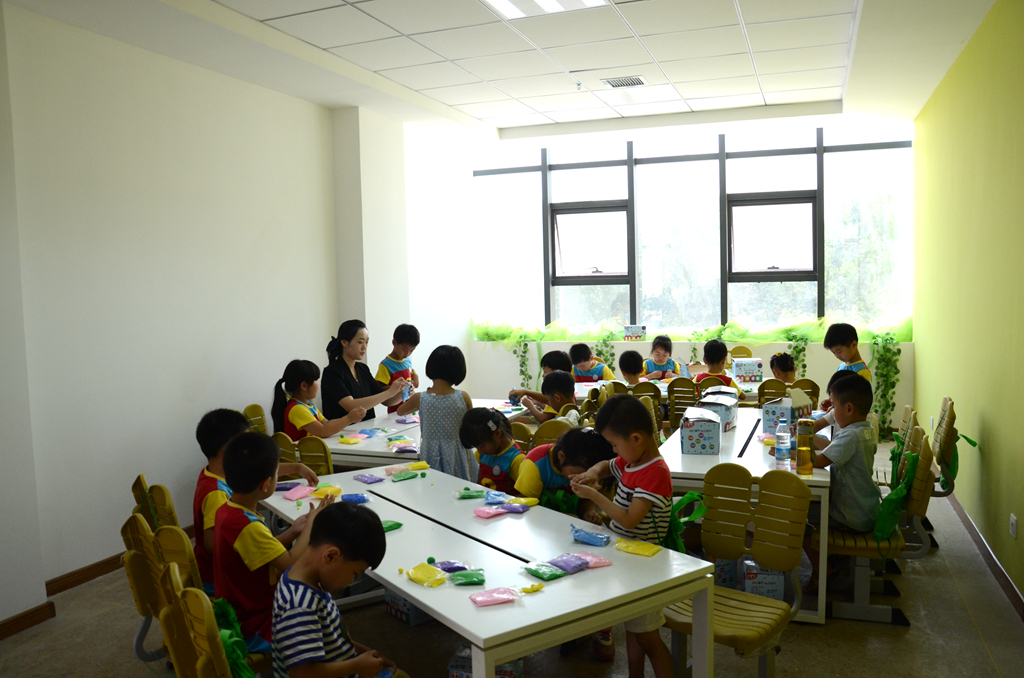手工课上,小朋友在老师的指导下,完成属于自己的小作品。