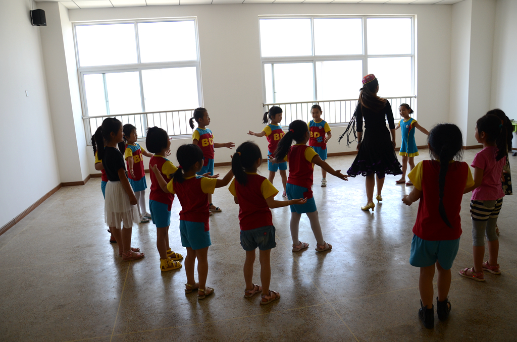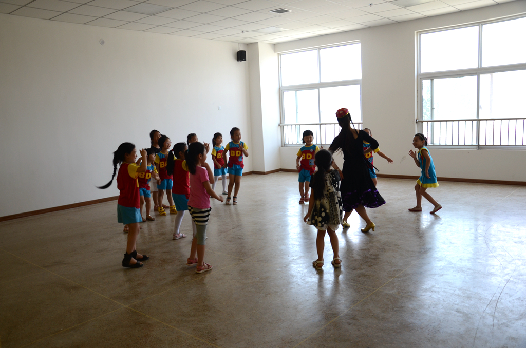 舞蹈课上,小朋友们随着舞蹈老师的节拍一起翩翩起舞。