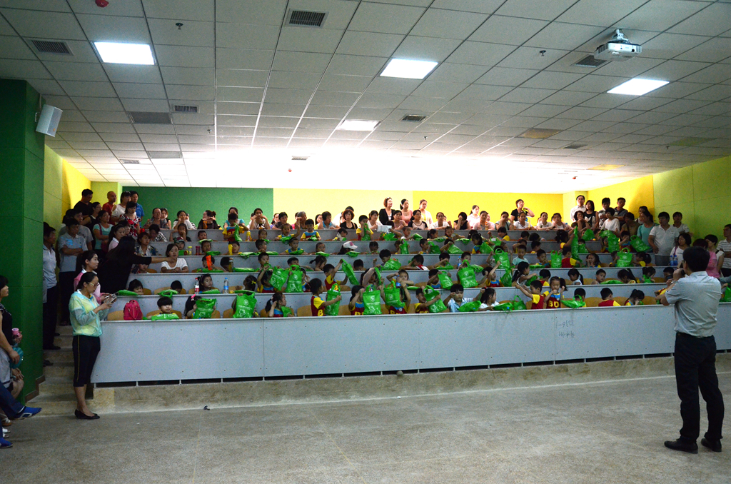孩子和家长们在宽敞明亮的现代化录播室里了解学校概况