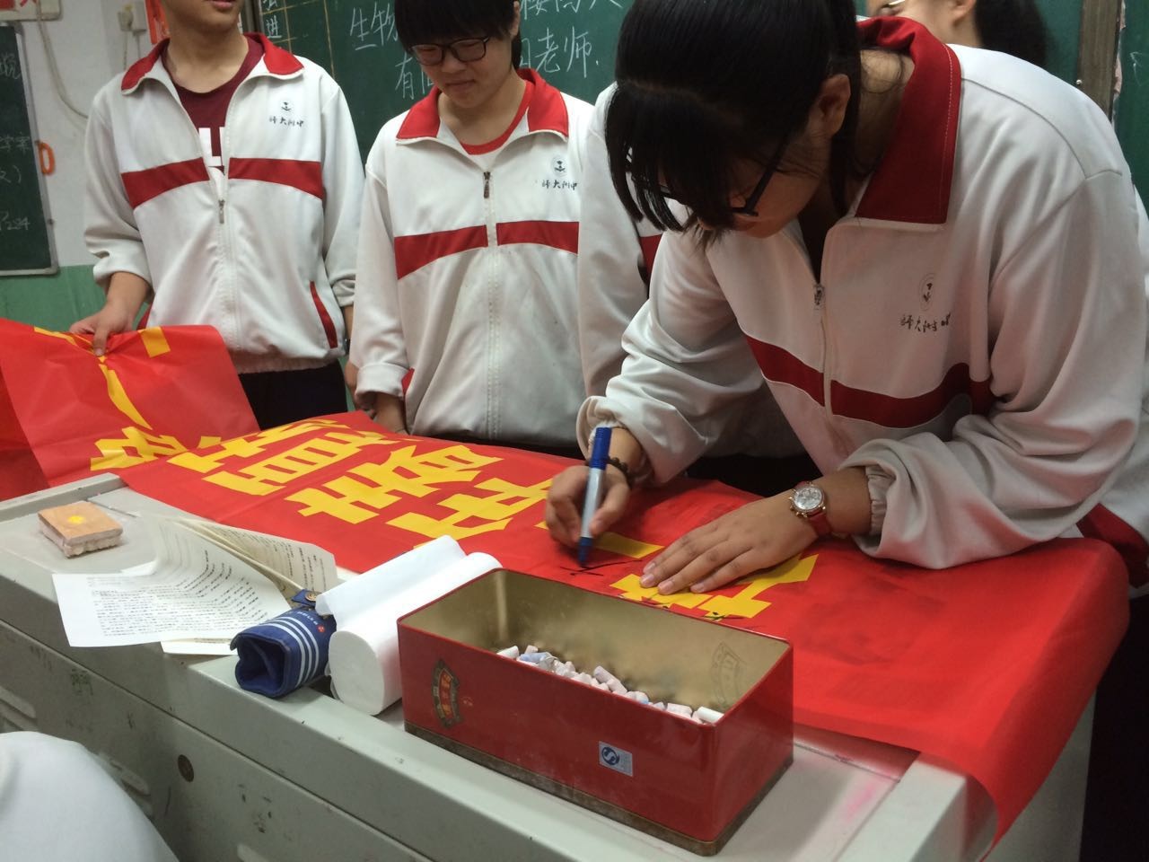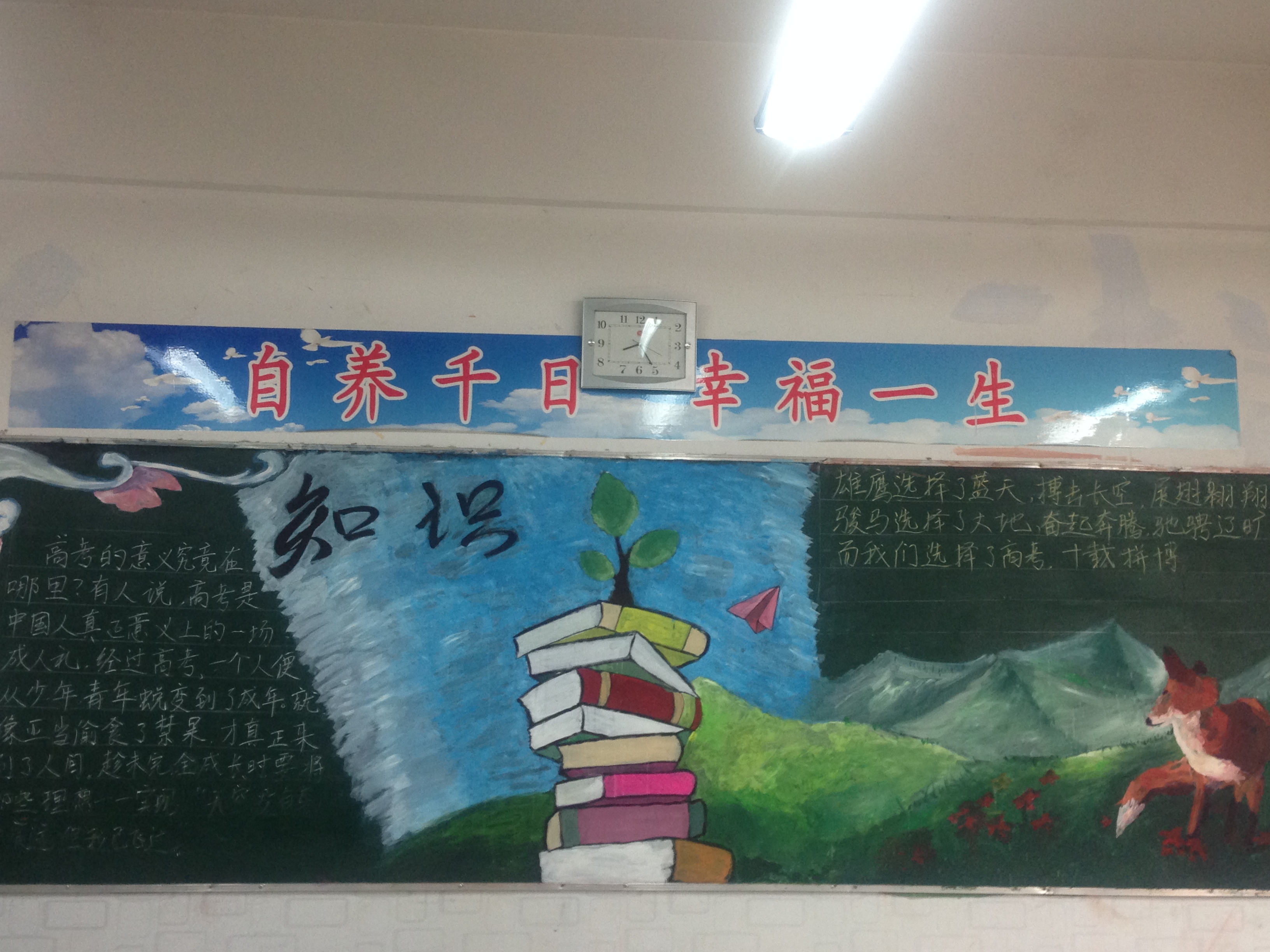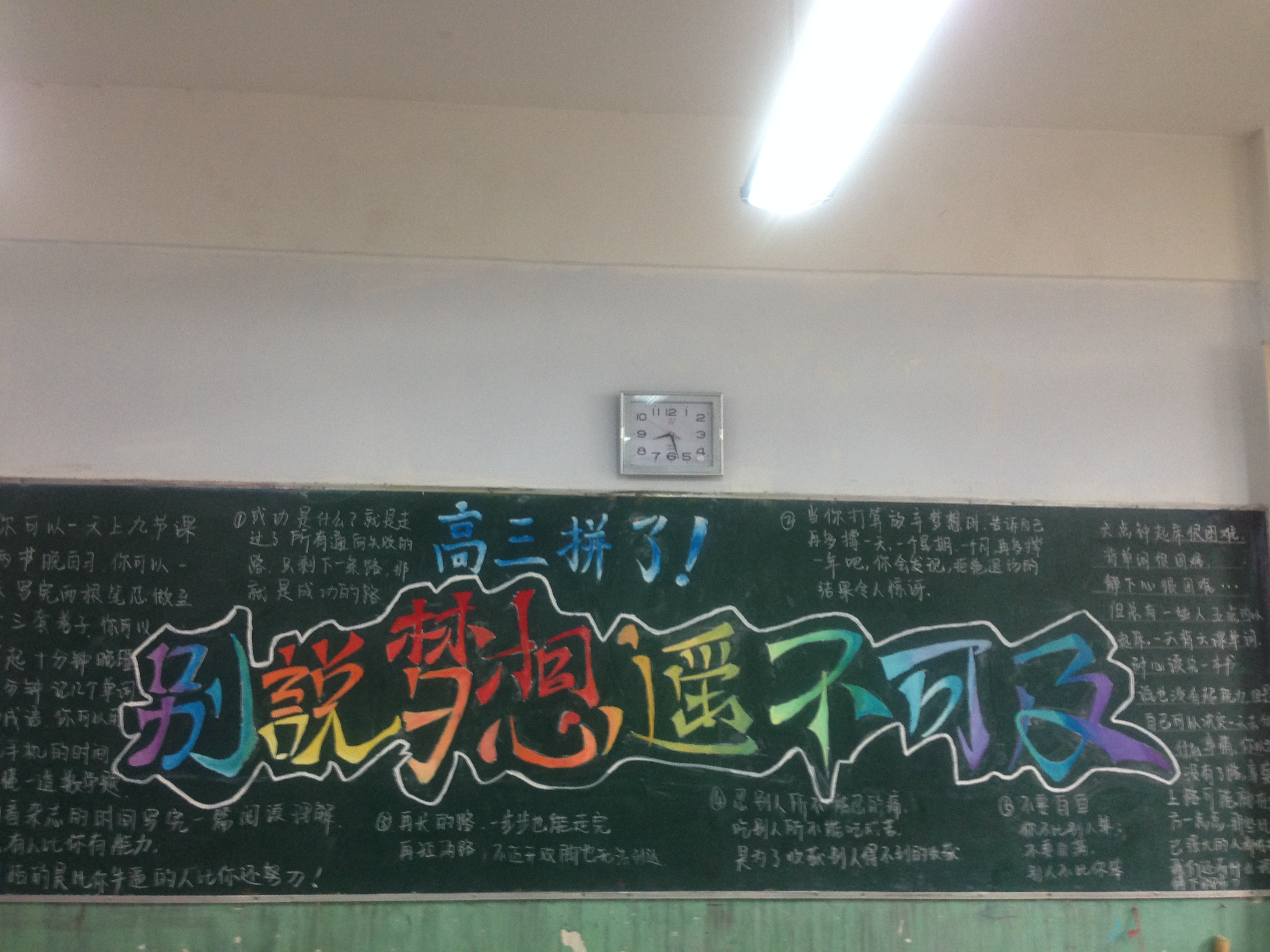 6月15号,经过年级班主任老师的共同组织,各班统一召开以“你好,高三”为主题的班会,在老师的鼓舞和带动下,同学们纷纷行动起来以自己独特的方式表达对于迎战高考的决心和勇气。会后,同学们还纷纷绘制与班会主题相关的黑板报,向即将到来的高三描绘出心中的誓言。