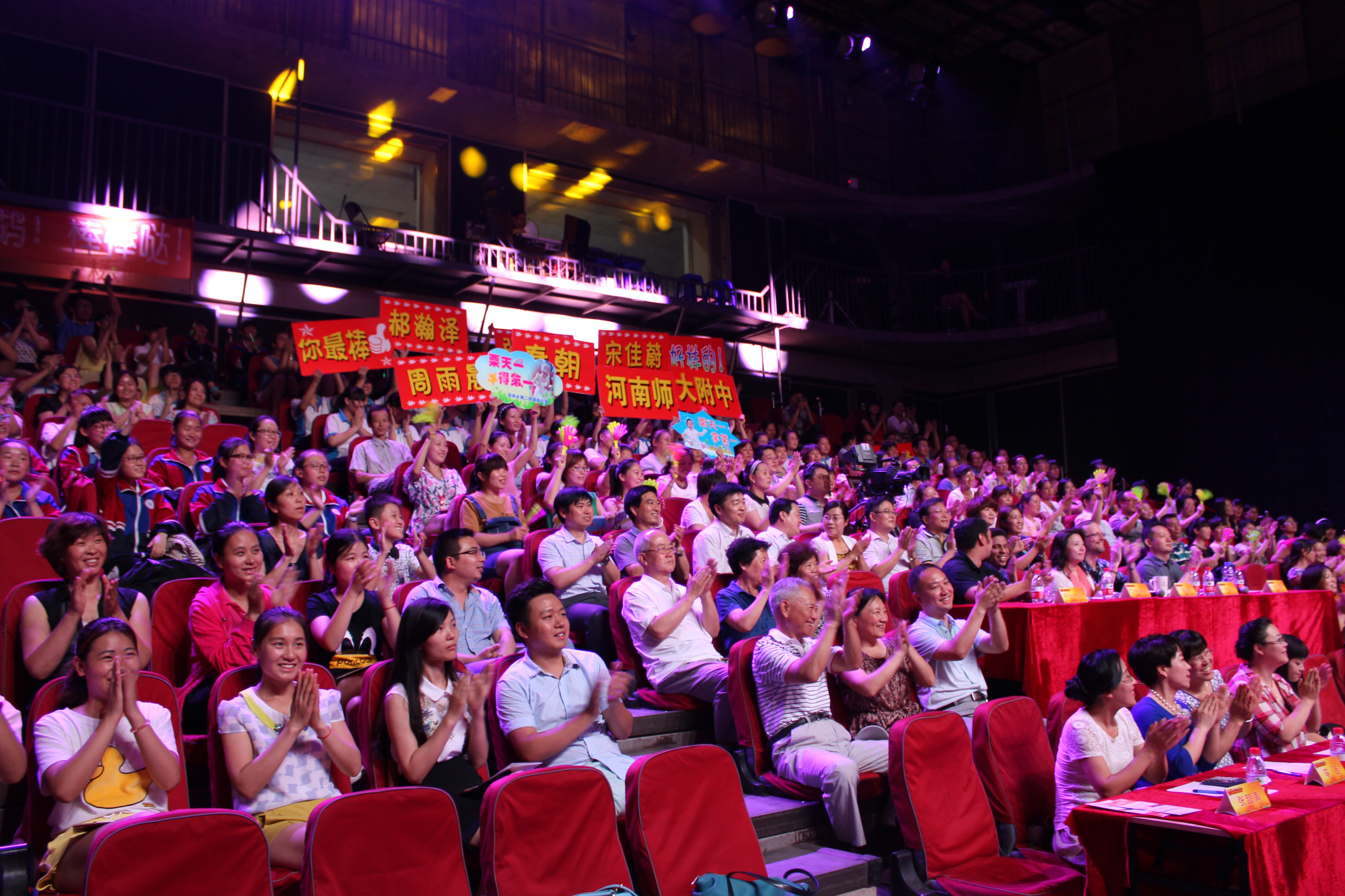 常务副校长刘齐晋、团委书记杨呈杰与我校五十余名师生家长共同组成的助威团队代表学校一起观看了现场比赛,大家对选手的精彩表现赞不绝口,同学们为我校选手的呐喊助威声响彻演播厅,让参赛选手感受到了巨大的精神力量。