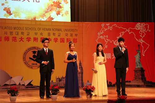 首先,崔涵钰同学的家长代表所有家长发言,讲述了从当初慕名而来到现在骄傲毕业的快乐历程,回忆了老师、同学带给自己孩子的幸福,引发了在座家长的强烈共鸣。而接下来,张韵致同学作为学生代表发言,一上来便脱口而出的流利的汉语、英语、韩语问候立刻博得满堂彩,李梦瑶、吴冕两位同学表演的民族舞蹈更用肢体语言演绎了东方之美,展现了国际部学子国际视野和民族情怀双翼共振的全面、优雅。
