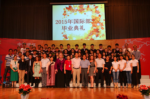 又到一年毕业季,天若有情,细雨飘飞。6月23日下午,天空飘洒着雨丝,学校大礼堂内灯火辉煌,群情激昂,国际部2015届毕业典礼在这里隆重举行。校长刘黎、党委书记杨宝刚、副校长刘齐晋、王继民、赵振华、杨相臣及学校各部门负责人拨冗莅临,与国际部全体中外教师和学生、高三年级学生家长等数百人齐聚一堂,共襄盛典。