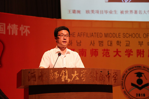 首先,刘黎校长代表学校领导致辞。在致辞中,刘校长对国际部老师和同学所付出的辛苦努力和所取得的突出成绩给予了充分肯定,对家长和社会各界对国际部工作的配合支持表示了衷心感谢,对国际部学子走好未来的人生道路表达了美好祝愿,并深情嘱咐同学们学成之后“常回家看看”。刘校长的话语温厚真挚,师生、家长深受感动。