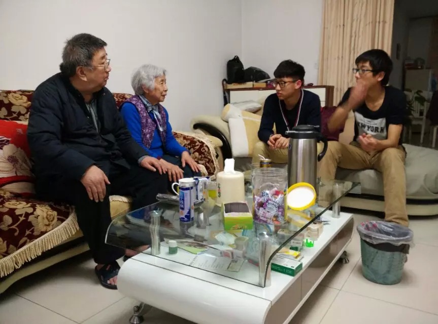 在这次外联部组织的关爱空巢老人活动中,志愿者被分为四人一组,每周固定时间去帮助退休老人。还记得第一次见到老人时的情景,岁月的流逝带走了他们身上年轻的活力。脸上的笑容虽然阳光明媚,却难以掩盖出淡淡的忧伤。在此期间,我们帮助老人收拾书柜,清理池塘等些家务。