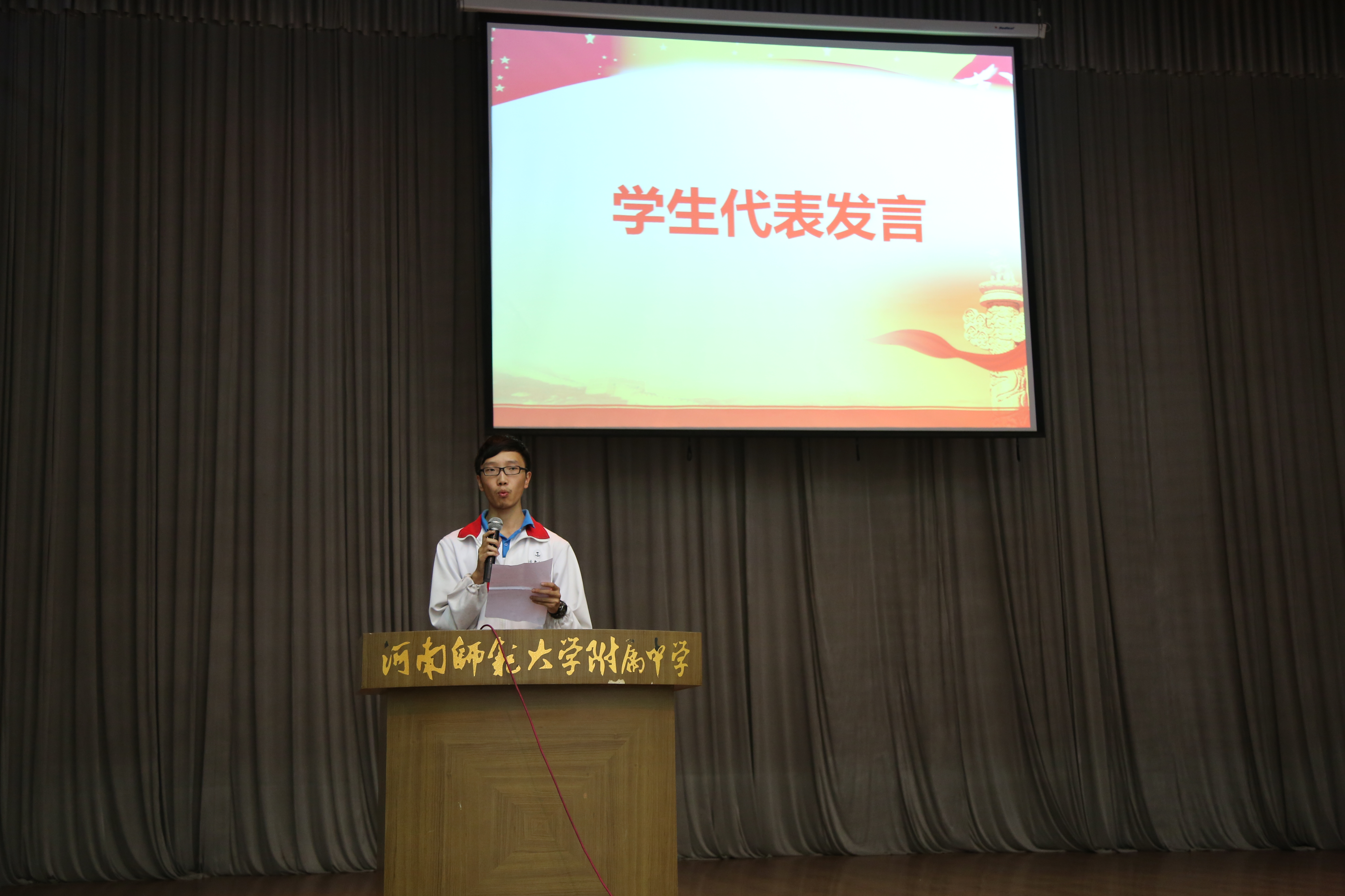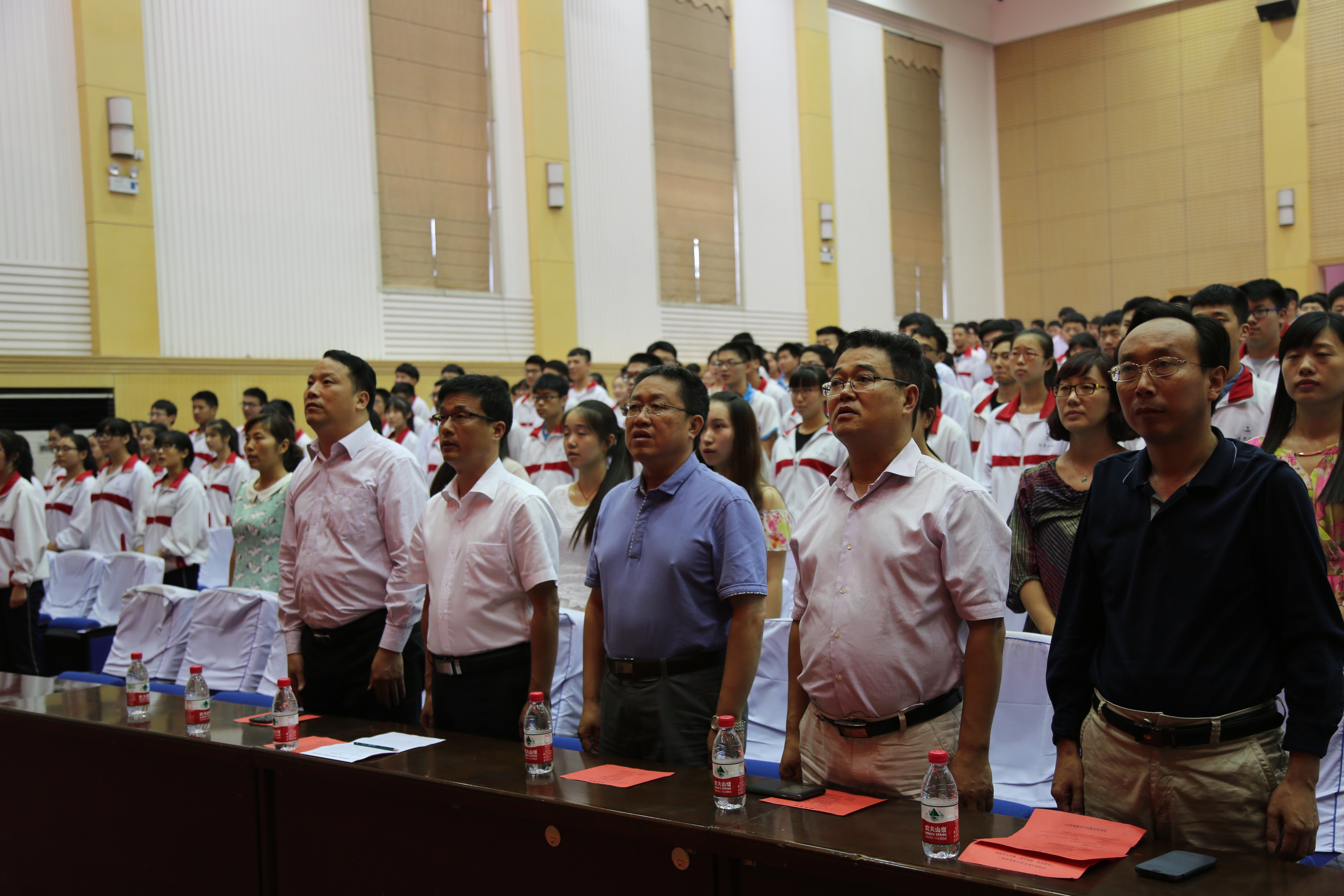 “滴水穿石战高考,如歌岁月,少年奋斗正当时;乘风破浪展雄才,折桂蟾宫,六月出剑应无畏”,为增强高三学子迎战高考的信心,激发学生奋进精神,促进学生以良好心态投入到高考备考中,2015年9月8日下午,河南师大附中金龙学校高三年级在西校区大礼堂隆重召开“决战高考 扬帆远航”高考动员大会。河南师大附中校长刘黎、党委书记杨宝刚、常务副校长刘齐晋、副校长赵振华,河南师大附中金龙学校教育教学部主任刘新选、副主任郭卫强,河南师大附中国际部副主任吴向辉,河南师大附中金龙学校高三年级主任崔夏锋、副主任黄宗伟以及金龙高三全体师生和家长代表参加会议。
