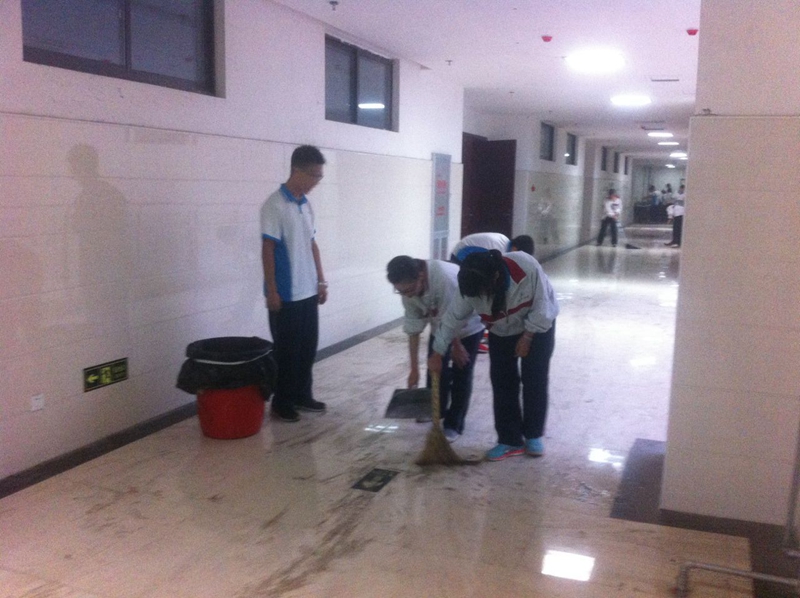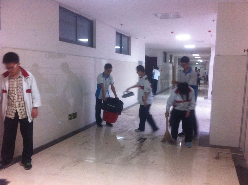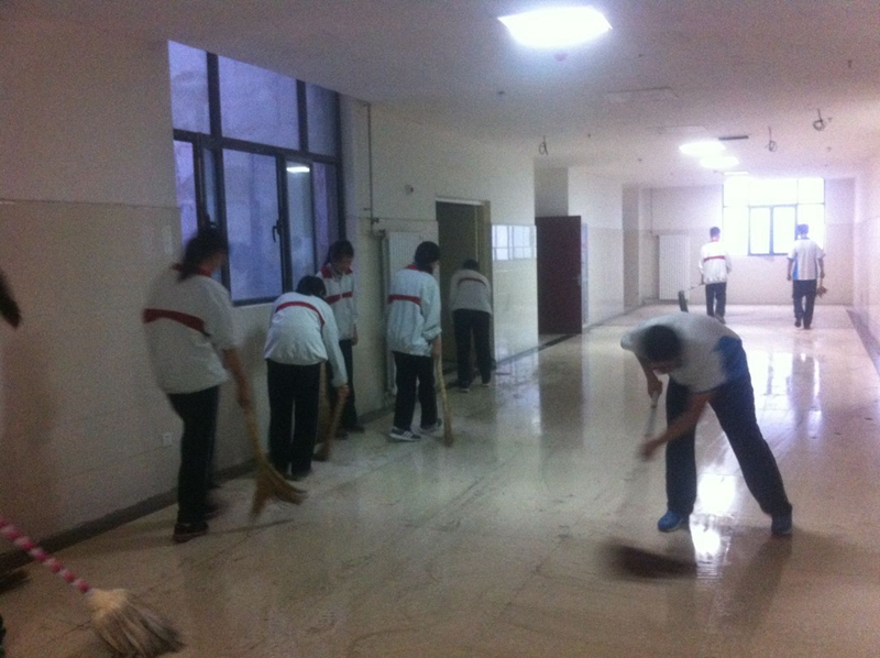 为进一步推进培养青年党校学员自愿服务意识的建设,加强党校学员间学习交流合作。2015年9月18日下午大课间,河南师大附中本部党校学员共计59人,在附中高三年级级主任任志福、副主任陈琦的带领下,来到我新实验楼四楼、五楼开展了义务劳动。在劳动过程中,同学们干劲十足、热火朝天,在同学们互助协作共同努力下,很快使劳动区域内焕然一新。
