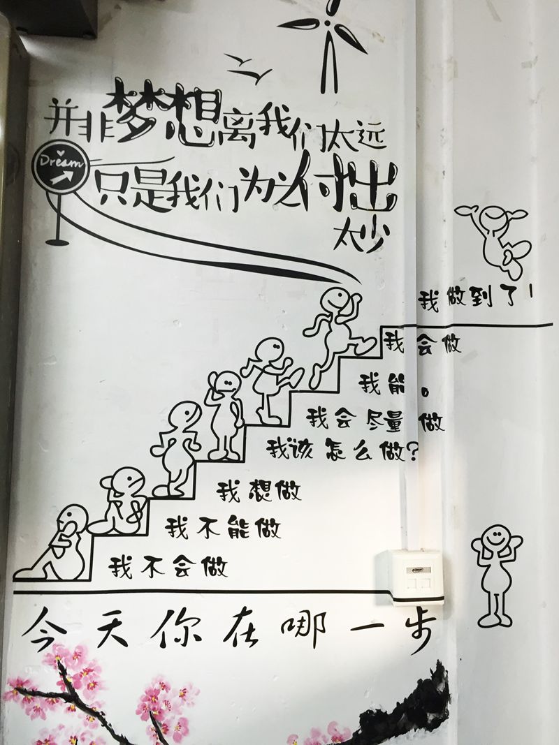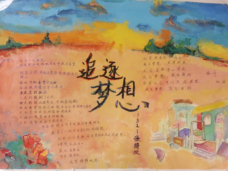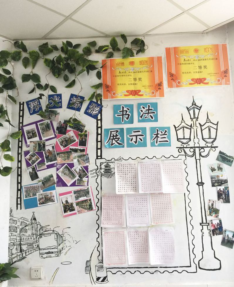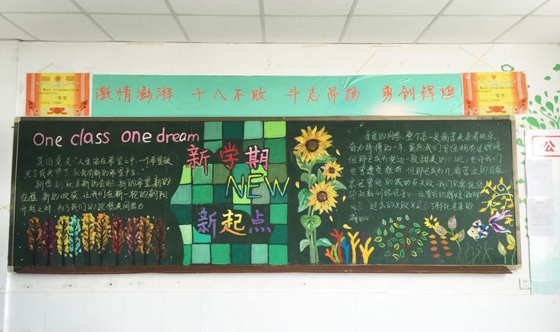 各班班主任与全体学生对教室班级文化进行了精心设计与布置,使每一堵墙、每一个角落都成为“无声的导师”,真正做到班班有个性,室室有特色。“今天你做了什么?”“一个今天胜过两个明天”“团结务实、奋发向上”等励志标语提醒着学生们认真规划,踏实前行:“心愿单”、“理想树”、“记分榜”为学生树立了学习目标,督促学生相互合作与竞争;“我们的未来”、“浮光掠影”、“班级风采”等照片墙展示了学生们在班集体中收获的快乐;“新学期,新希望”等黑板报作品立意高远、色彩绚丽;墙上的书法作品也为教室营造了浓浓的传统文化氛围。