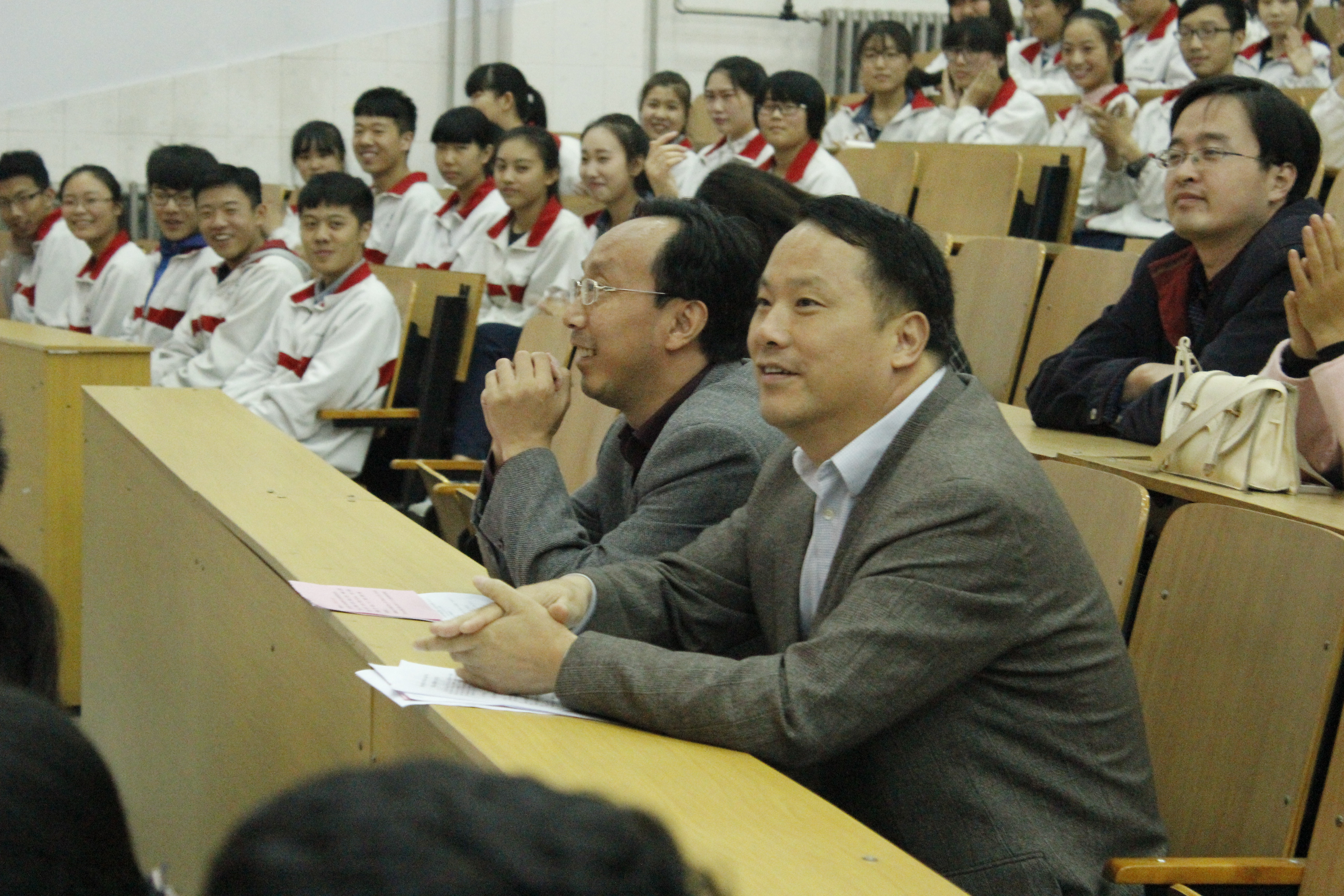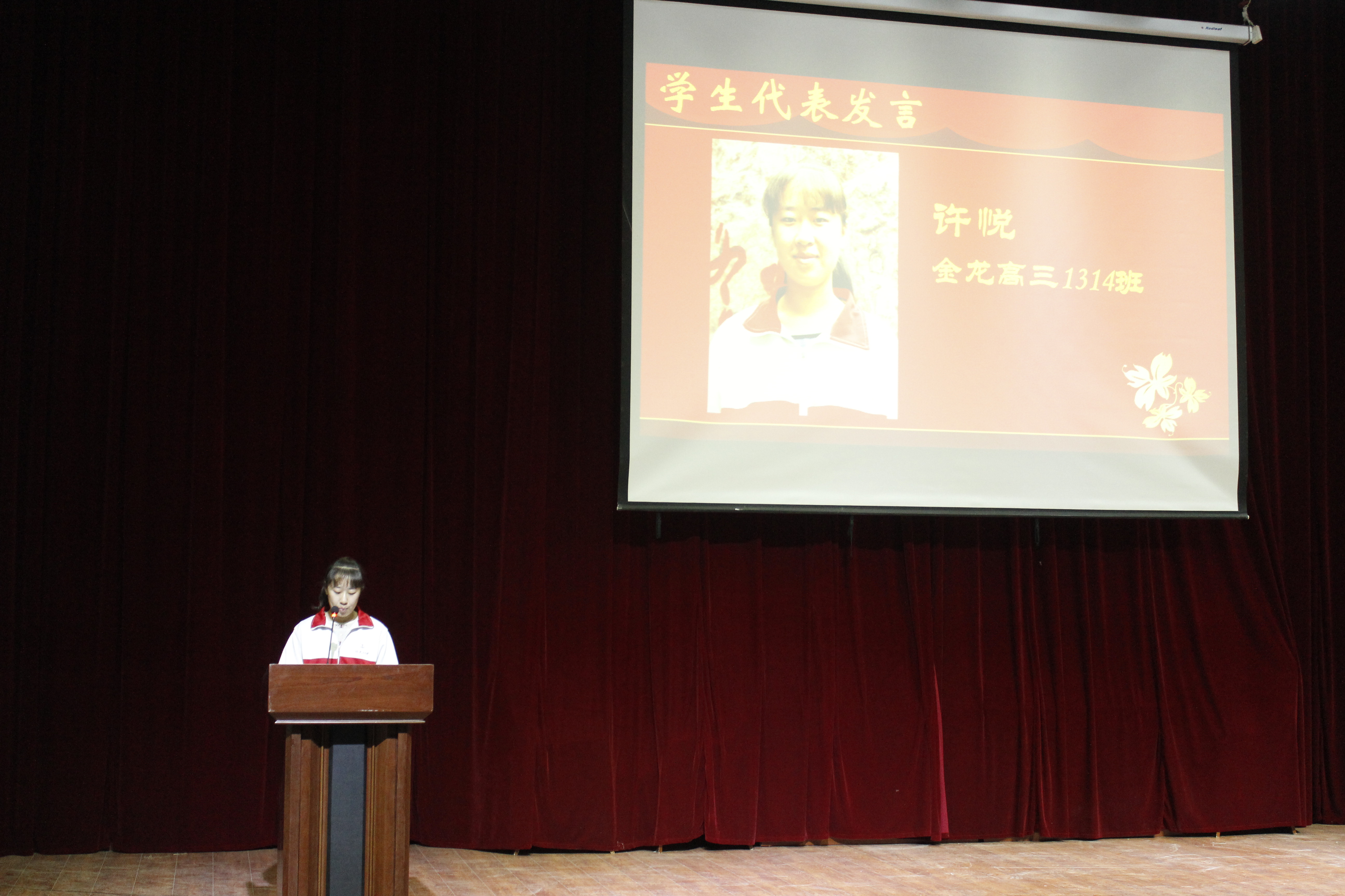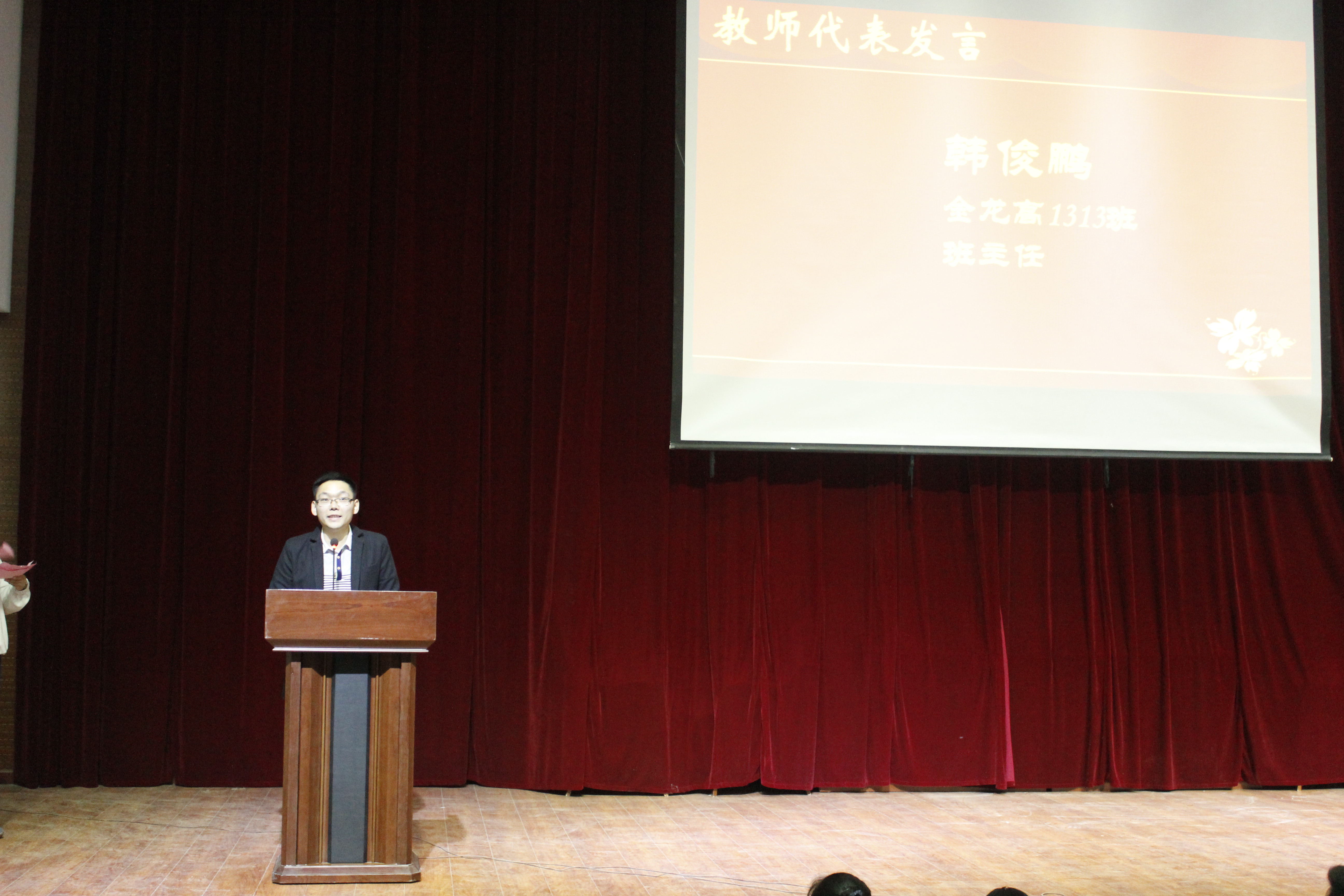高1314班许悦代表学生发言,她结合自身实际,分享学习经验。韩俊鹏老师代表教师发言,鼓励学生努力拼搏,韩老师以牛顿第二定律作为结尾的发言幽默风趣又催人奋进,赢得了同学们热烈的掌声。