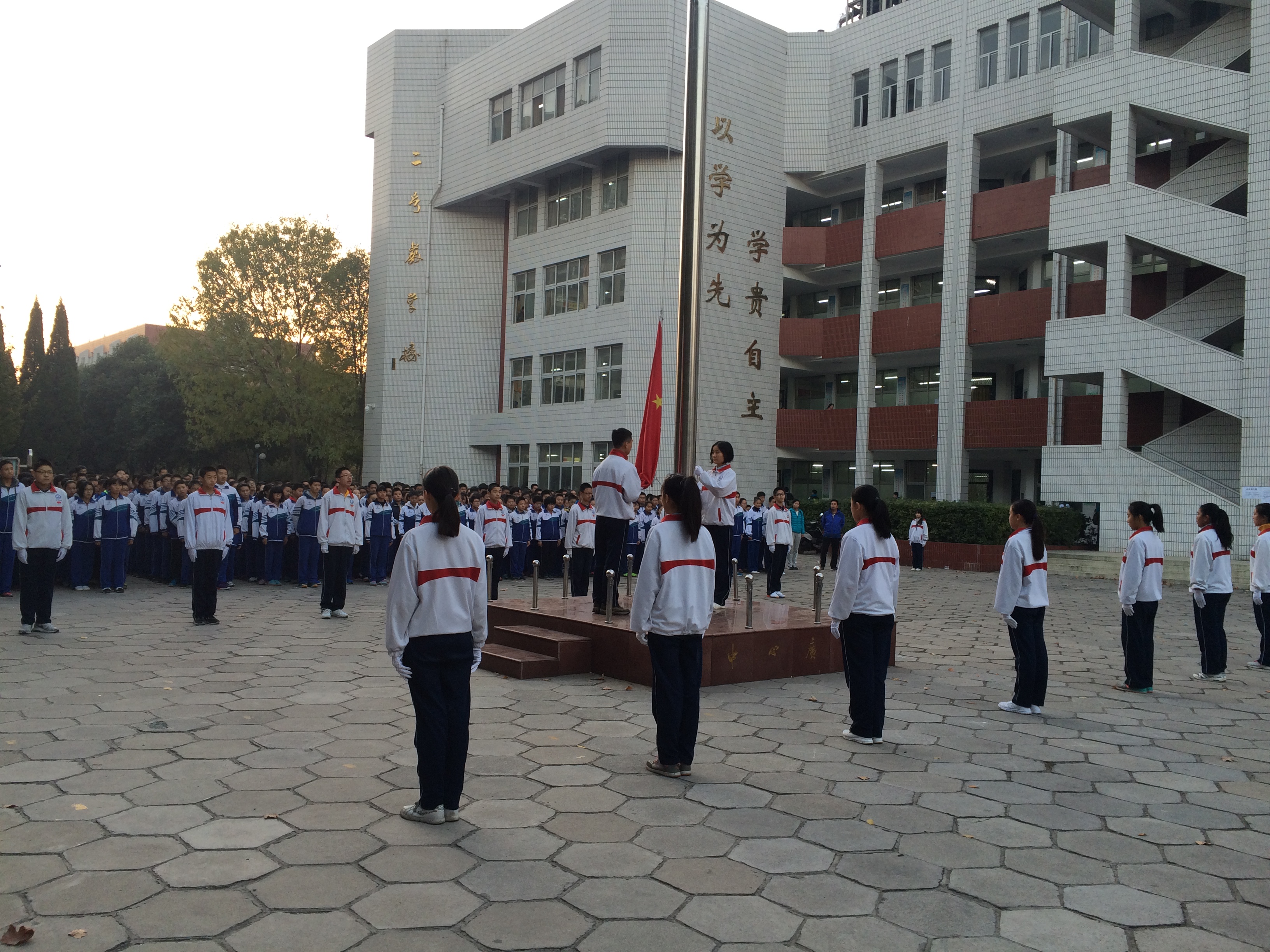 秋风送爽,天凉好个秋!11月2日清晨,由本部初二年级承办的升国旗仪式在飒飒秋风中拉开帷幕。学校中层以上领导和初二年级全体师生一起参加了此次升旗仪式。本次升旗仪式由本部初1401班主持进行。