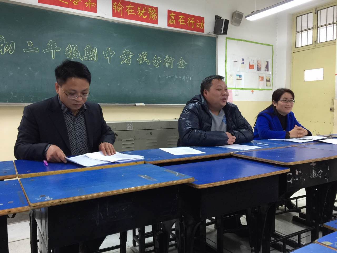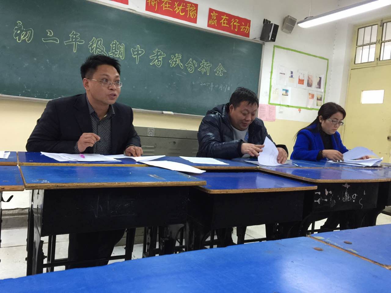 冬雨飘零,寒风凛冽,但是西校区启智楼1302班教室里却温暖如春,本部初二年级部全体教师济济一堂,如期召开期中考试分析会。河南师大附中学部副主任侯伟和张自发莅临会议并做重要发言。