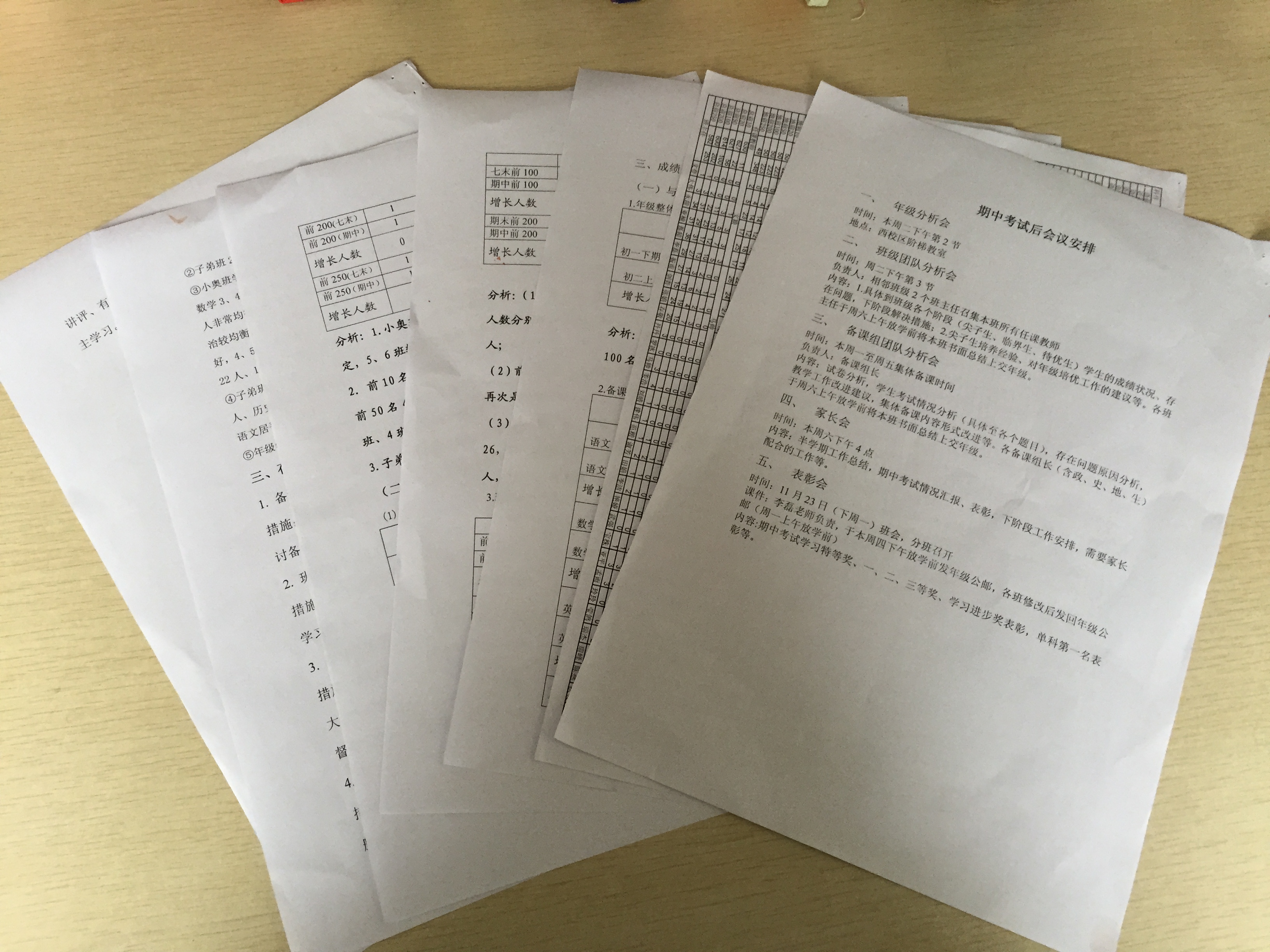 初二年级的本次期中分析会另一大亮点在于会后工作的具体安排。班级团队分析会后,紧接着是备课组团队分析会,同时还有本周的家长会和下周的成绩表彰会。