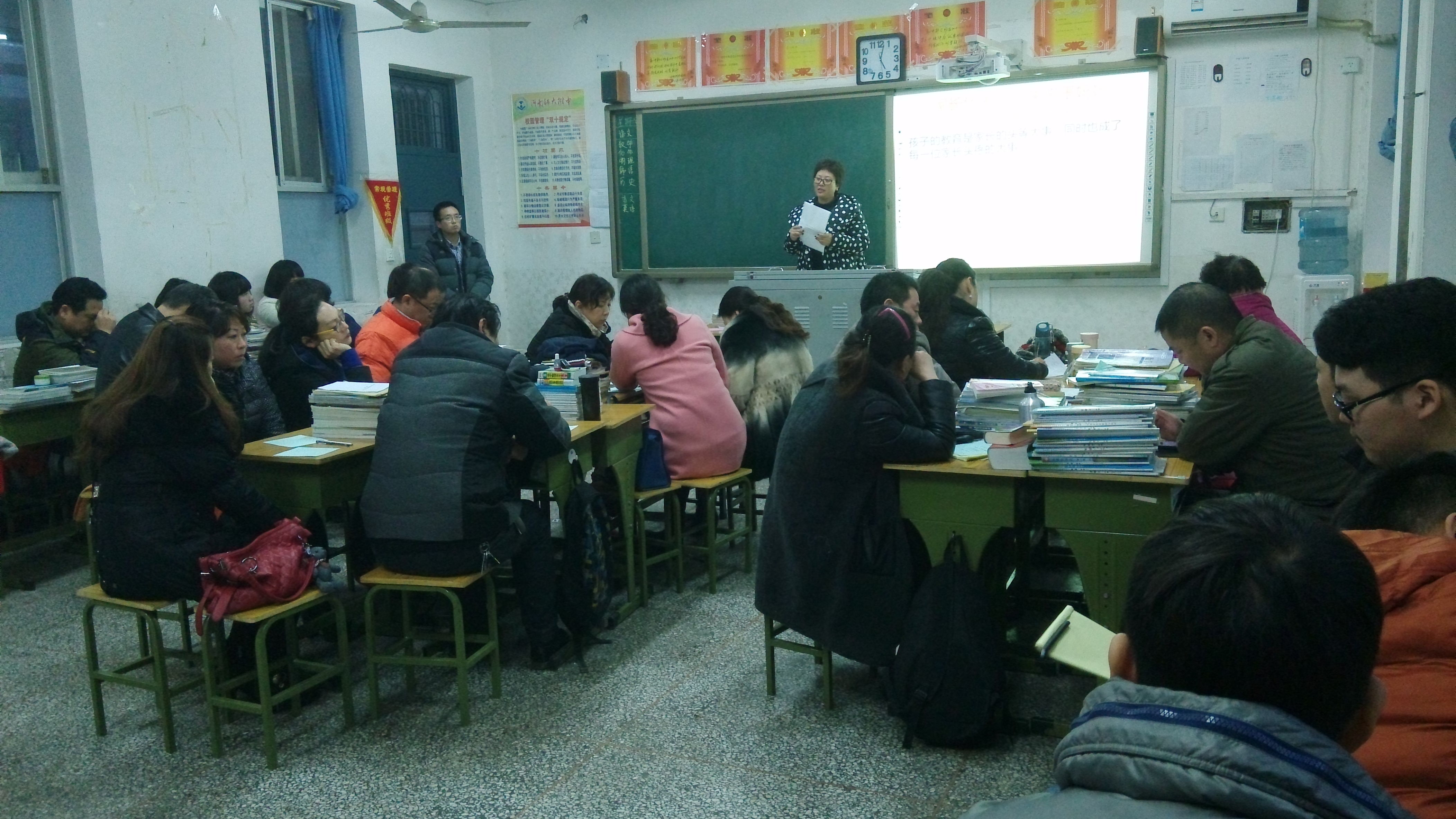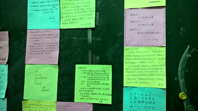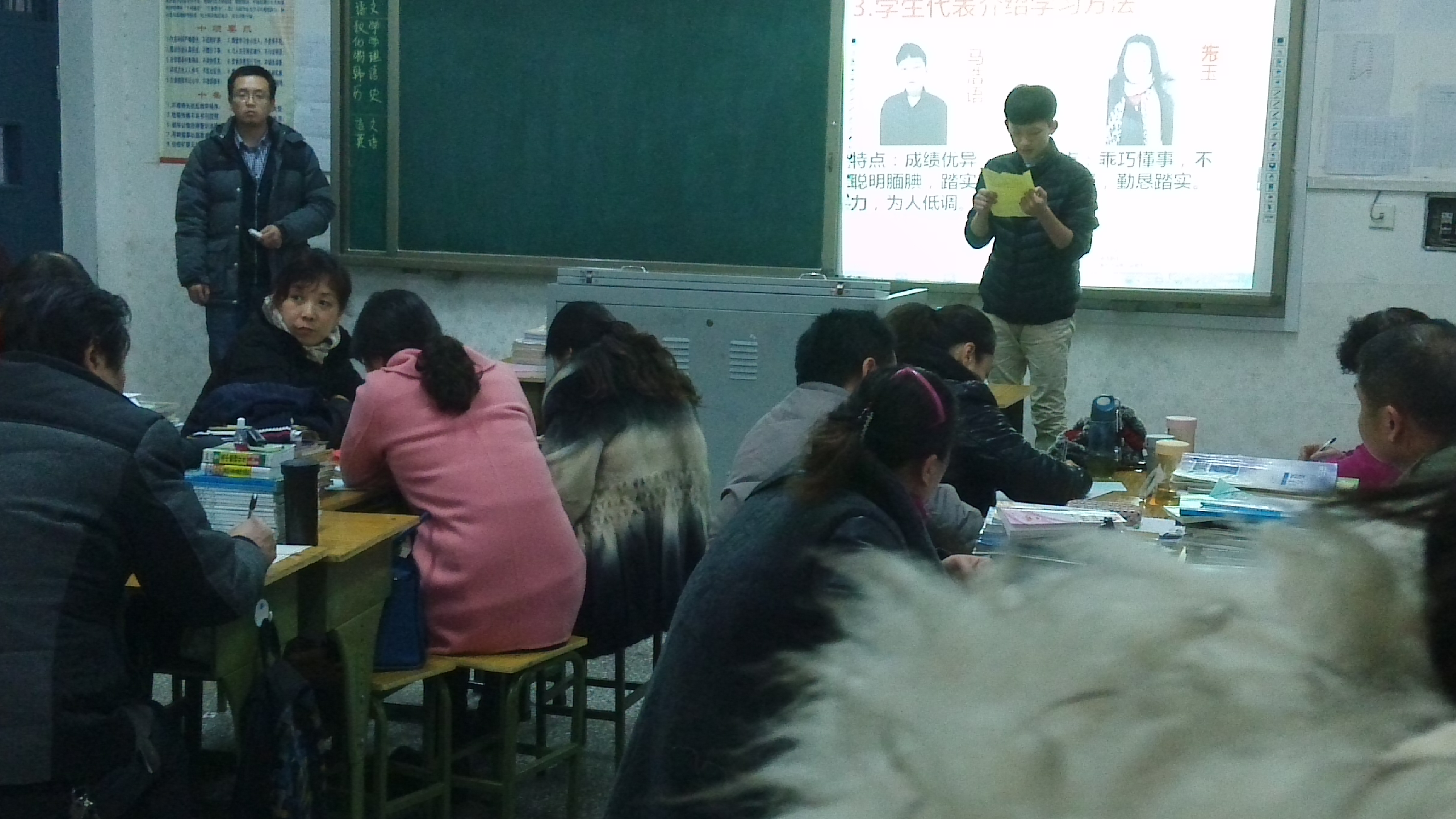家长会上,学习取得阶段性进步及成绩优异的同学、相关学生家长依次登上讲台发言,同学及家长则认真聆听,时而记下心得,时而鼓掌赞扬,场面十分热烈,而在最后,家长们或将话语写下贴在黑板上,或亲手板书,语句亲切朴实又闪烁智慧,言简意丰,启人深思,感人至深,将教室变成了温暖的海洋,把家长会气氛推向了高潮。同学们既为爸爸妈妈的爱振奋,又为叔叔阿姨的鼓励感动,纷纷表示将在备考复习和考试中全力以赴、全科冲A,家长们更为孩子的话语和拥抱这特殊的感恩节礼物而激动……