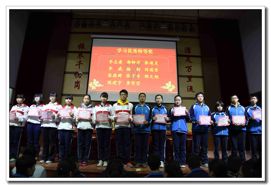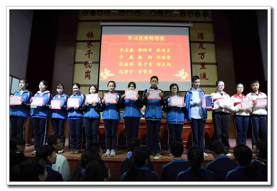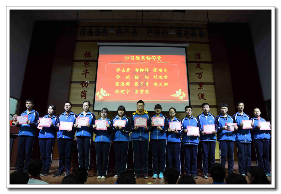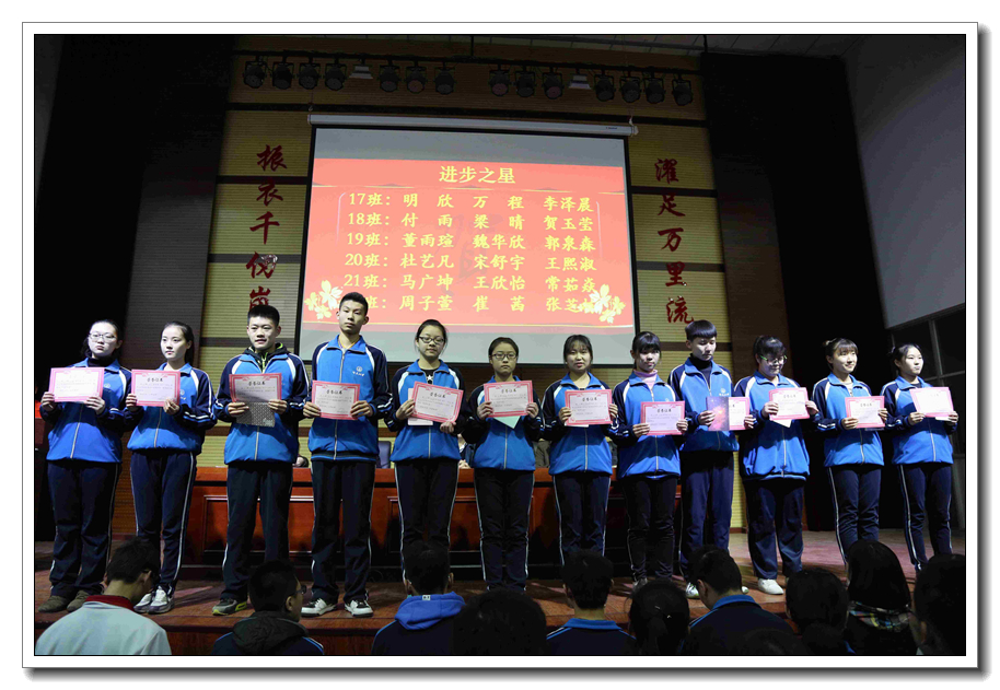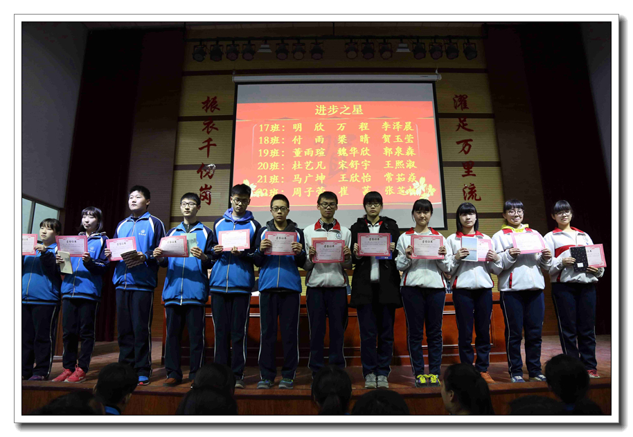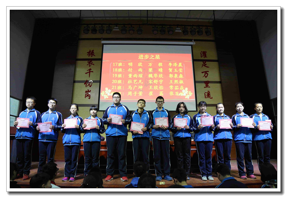会议首先由金龙高中学部副主任郭卫强宣读本次期中考试进步之星名单,并为他们颁奖。