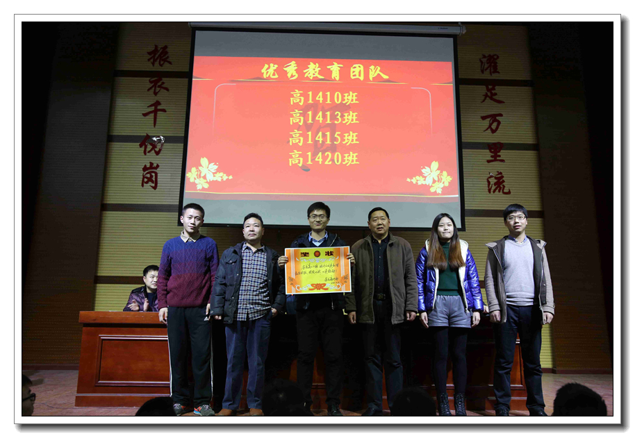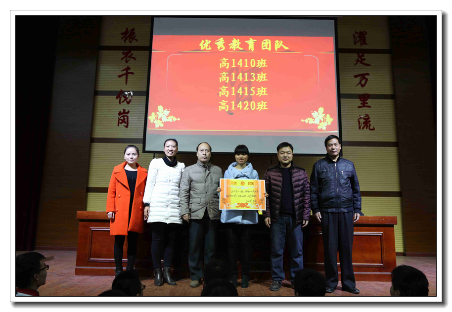 没有团队精神难成大事,一个班级,一个教师队伍,若没有团队精神,也很难完成肩负的使命。在过去的学习生活中,金龙高二年级全体师生发扬光荣传统,精诚团结,顽强拼搏,不断进取,用行动来践行教育誓言,并在期中考试中取得了可喜的成绩。之后,副校长赵振华宣布优秀教育团队获奖名单,并邀请各位老师上台领奖。