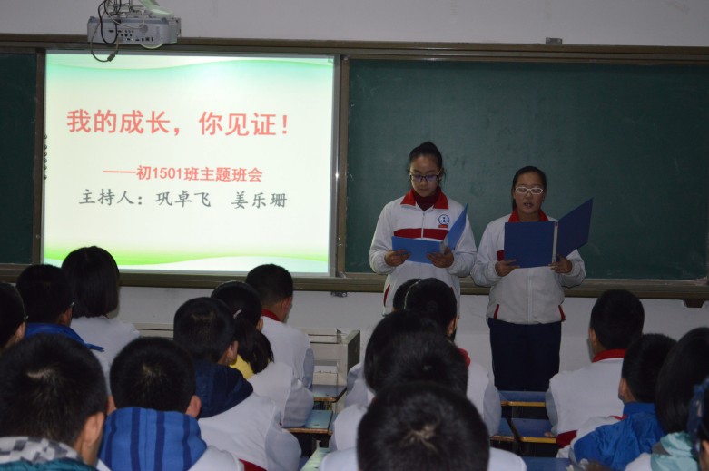 12月11日下午,由本部初一年级1501班承办的主题为“我的成长你见证”的我校本部第七次班会观摩课在西校区阶梯教室成功开展。各年级部主任,班主任,以及各班班长、团支书共同聆听学习,并进行了交流讨论。班会课在班主任王莉老师的指导下,由巩卓飞和蒋乐珊两位同学主持。