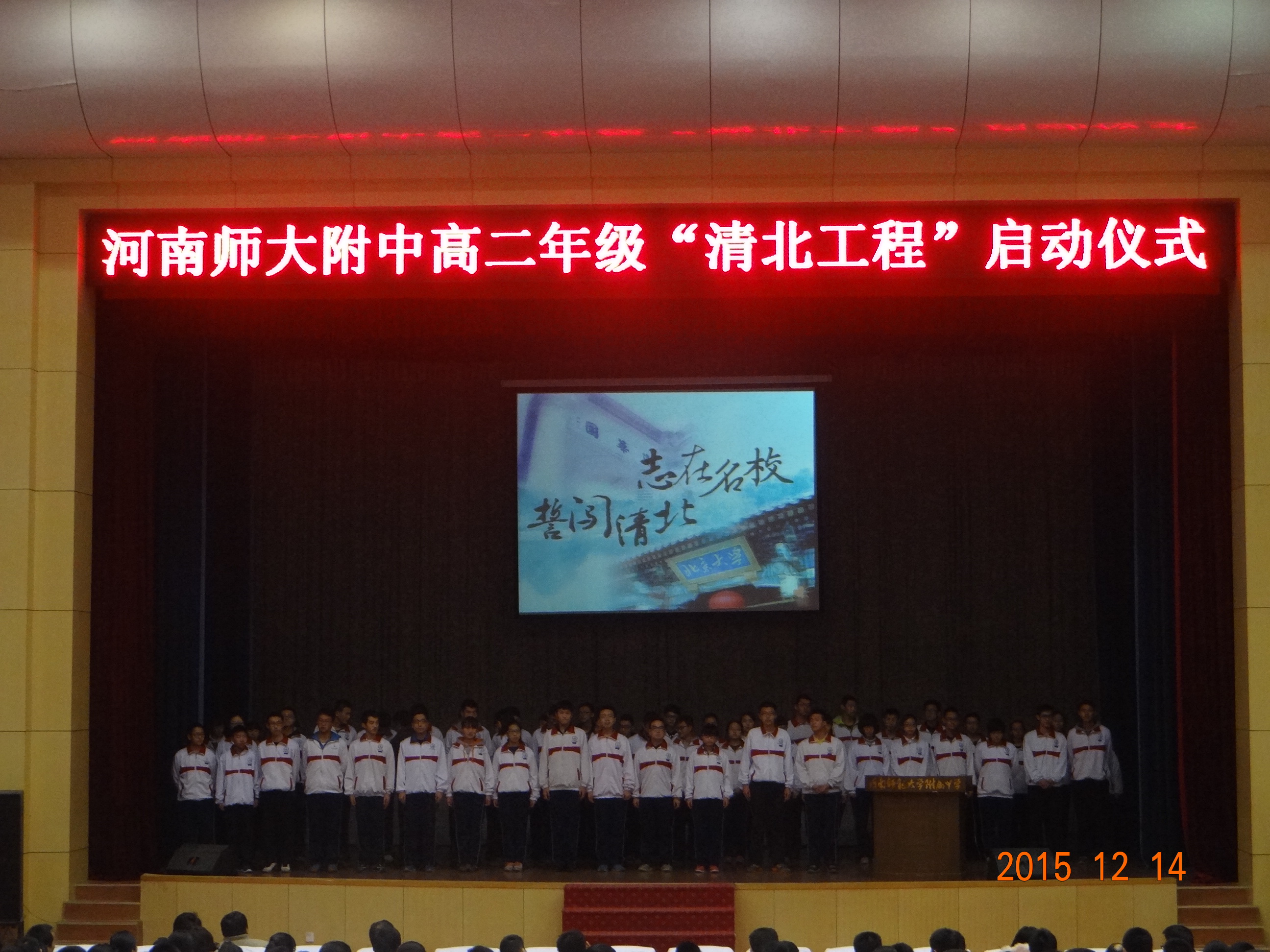 12月14日下午,高二年级“清北工程”启动仪式暨冲刺“清北”名校动员大会成功举行。高二年级实验班全体师生参加了本次活动,河南师大附中副校长王继民出席活动并讲话。