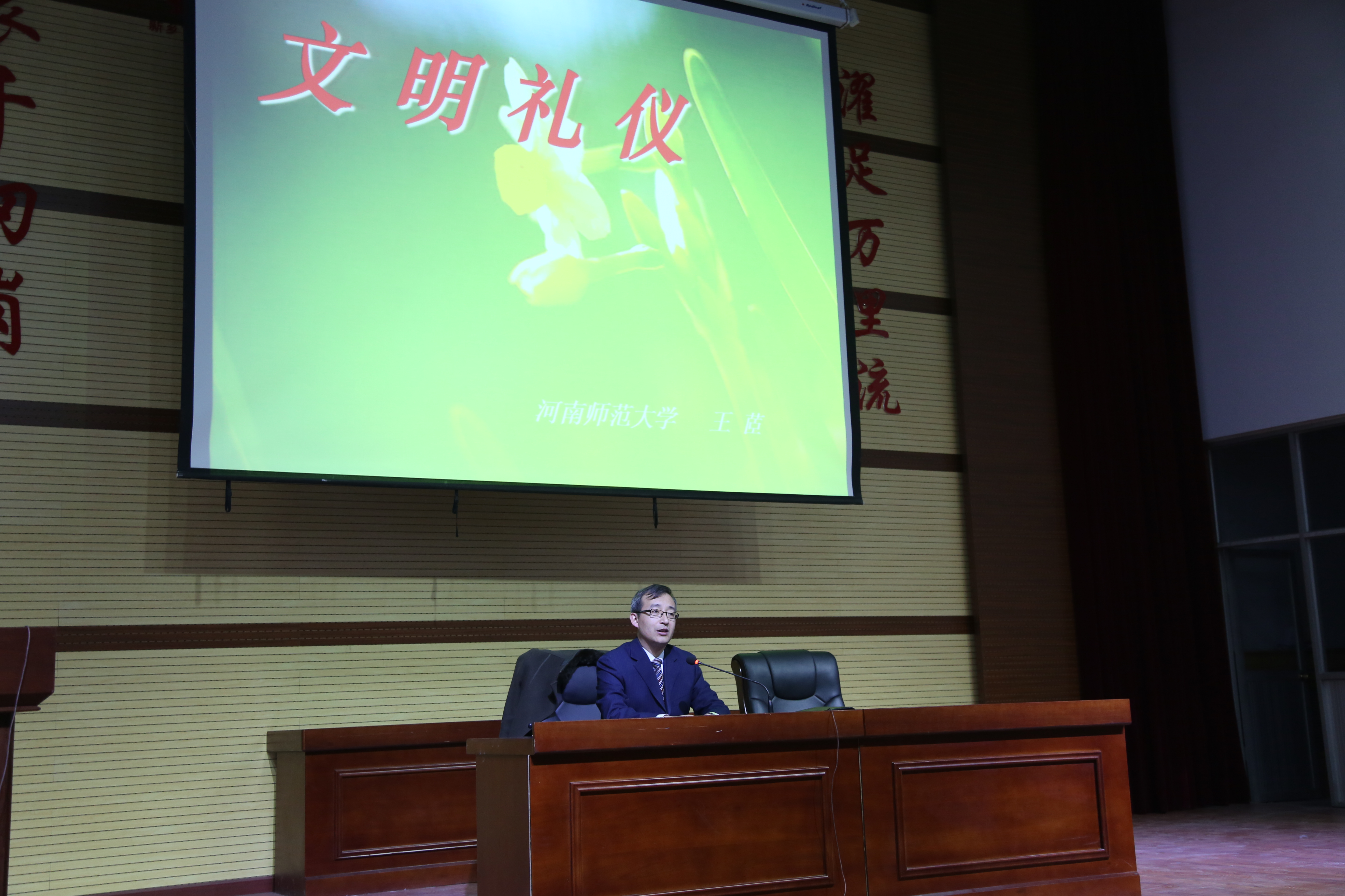 然后,王茝教授为师生们作了题为《文明礼仪》的专题讲座。王教授专业知识广博,从衣着礼仪、介绍礼仪、握手礼仪等八个方面深入浅出地讲述了文明礼仪的具体做法,整个报告过程中,王教授幽默风趣,所列事例贴近同学们的生活,现场的气氛热烈,赞叹的掌声不断响起。王教授的报告结束之后,李霞老师和刘瑜婷同学作为师生代表就礼仪的重要性作了发言。