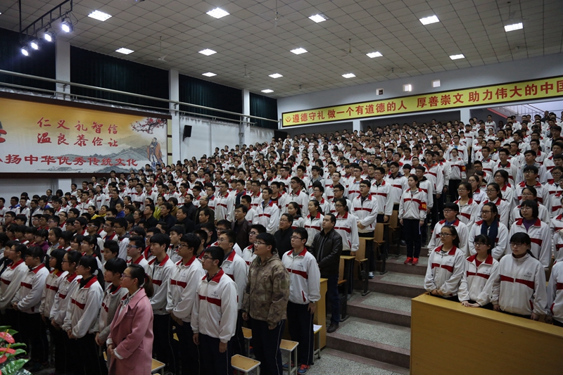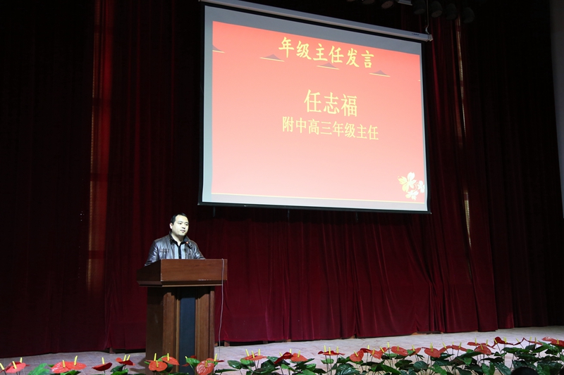 沐浴着和煦的春景,满怀着冲刺的激情,2月27日下午,河南师大附中2016届高三百日冲刺誓师大会在道德讲堂隆重举行,吹响了2016年决战高考的号角。校长刘黎,副校长王继民,附中教育教学部主任汪才安,副主任侯伟、张自发,高三年级级主任任志福,副主任陈琦和高三年级全体师生参加了此次大会。
