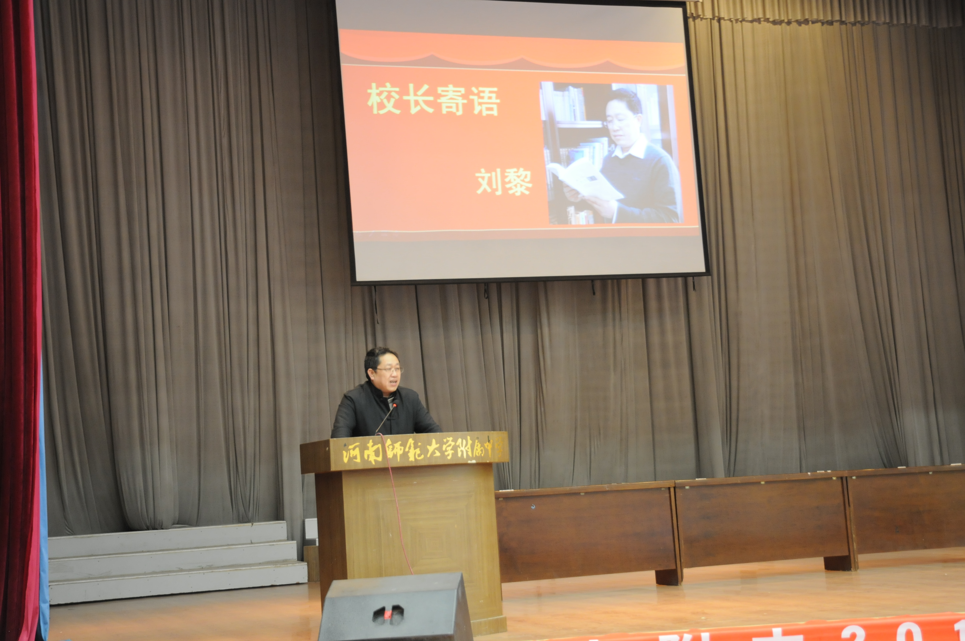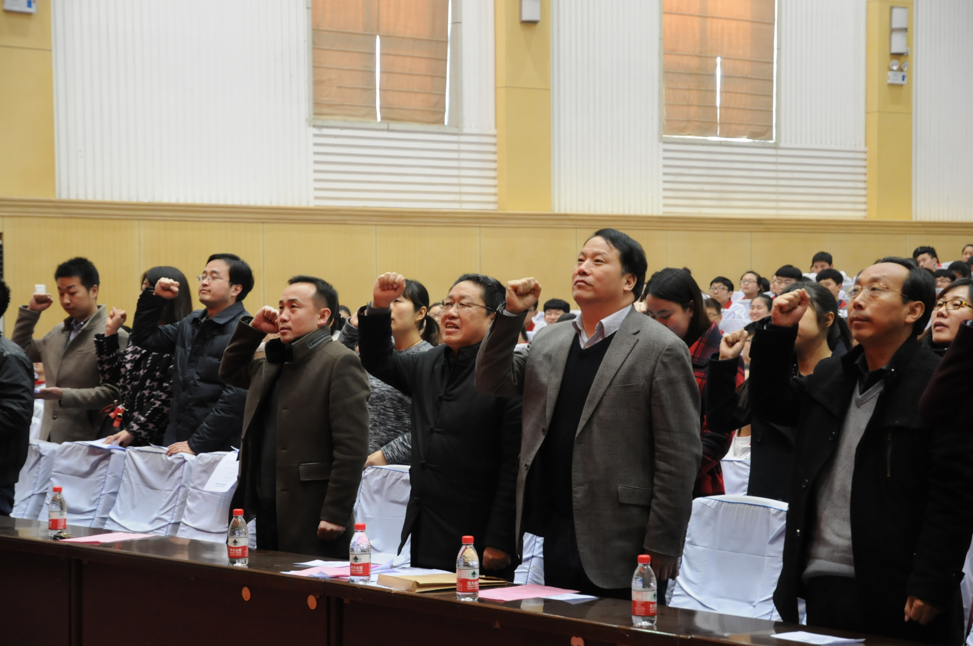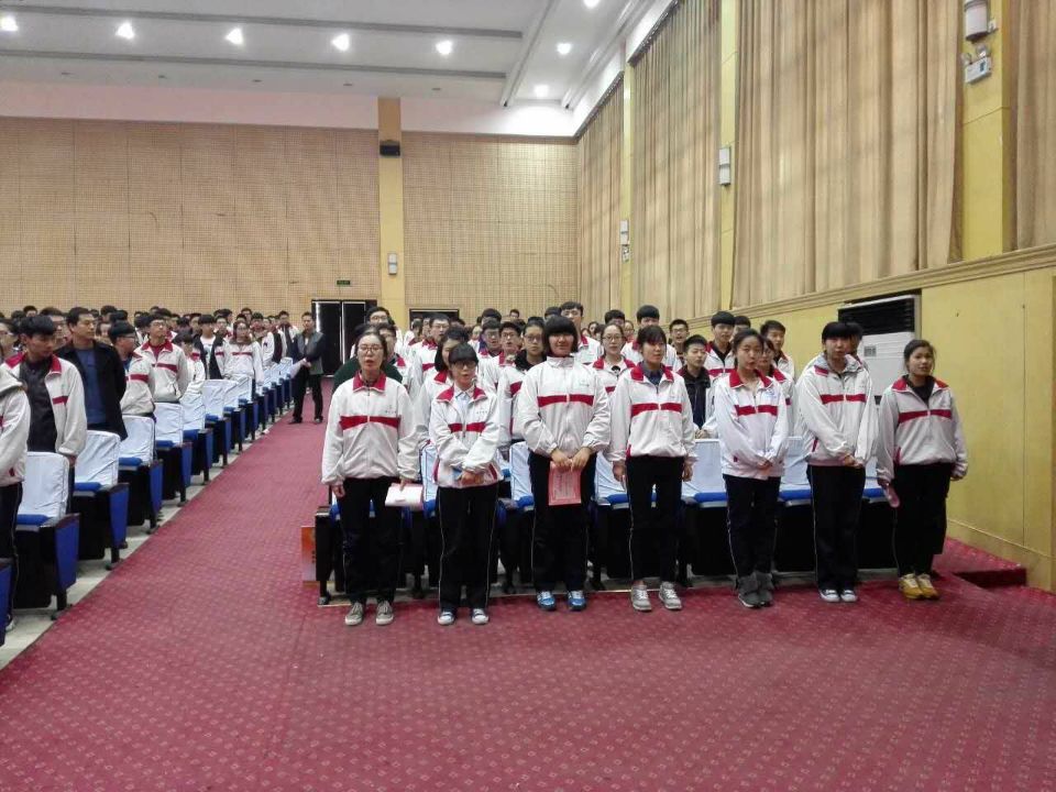 2月27日下午,我校西区礼堂内掌声雷动,座无虚席。2016届金龙高三年级综合表彰暨百日誓师大会在此隆重举行。与会的领导有河南师大附中校长刘黎、副校长赵振华、金龙教育教学部主任刘新选、副主任郭卫强。参加会议的还有金龙高三全体师生。