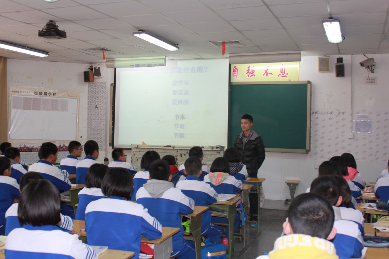 新学期伊始,按照上级教育行政主管部门的要求,在校团委和金龙初中教育教学部的组织下,初一年级部认真开展了“爱学习、爱劳动、爱祖国;节水、节电、节粮”主题班会。