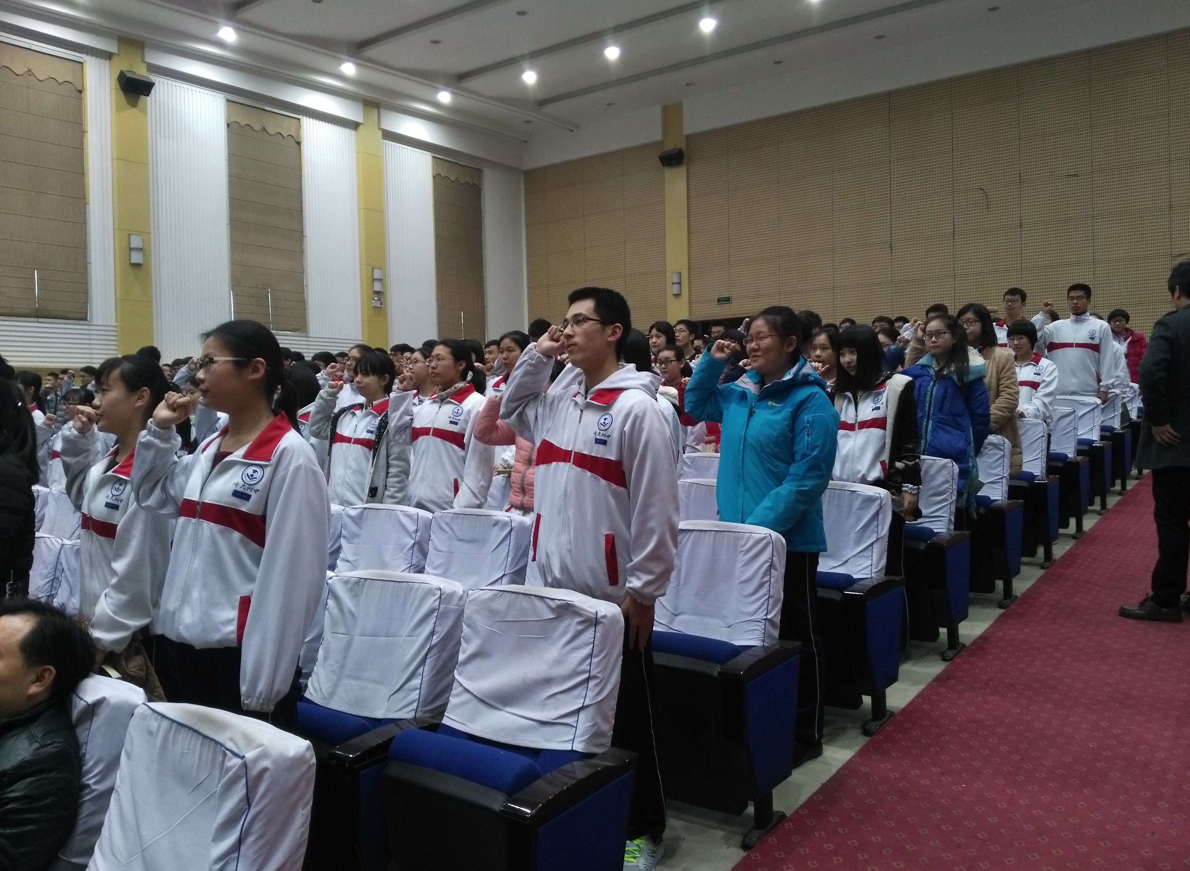 在共同观赏一段激动人心、热血励志的短片后,全体同学在高二2班孟诗奥同学带领下起立宣誓:“勇往直前,直挂云帆;以梦为马,志存高远。”