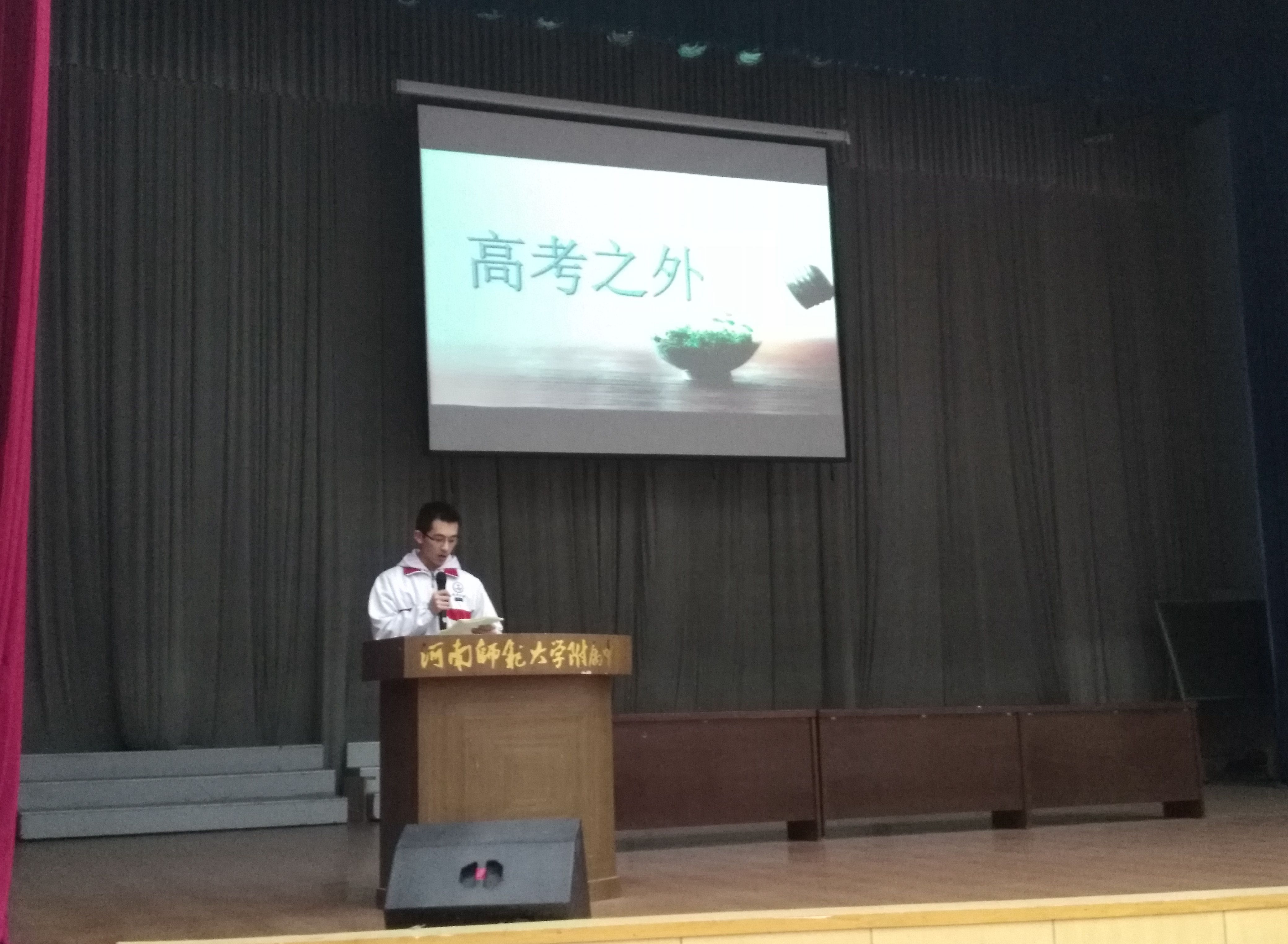 之后,高二1班韩硕磻同学以《阅读与思考》为题畅谈自己在读书过程中的心得与感悟;高二4班李文静同学分享了“四心学习法”,介绍自己的学习经验与技巧,勉励大家共同努力,拼搏进取;高二2班董仕豪同学发表了题为《高考之外》的演讲。高二1班班主任王发玉老师作为教师代表鼓励同学们尽心尽力,追逐梦想。