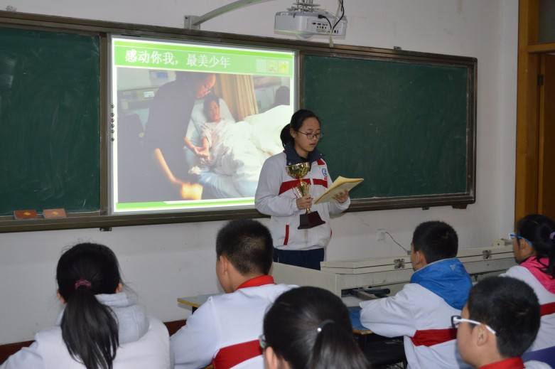3月11日,初1503班开展了主题为“日行一善,爱满校园”的班会观摩课活动,为年级开展的“日行一善”学雷锋活动画上了圆满的句号。班主任张俊娜老师引用“勿以善小而不为”向同学们诠释了善行的内涵,用一张张照片记录了同学们善行的点滴,通过交流讨论让同学们明确了善行的意义。班会中最让人感动的一幕是翟苌坤同学独自一人照顾因骨折而住院的妈妈的一段视频,很多同学不禁潸然泪下,热烈的掌声送给了这位“最坚强的少年”。