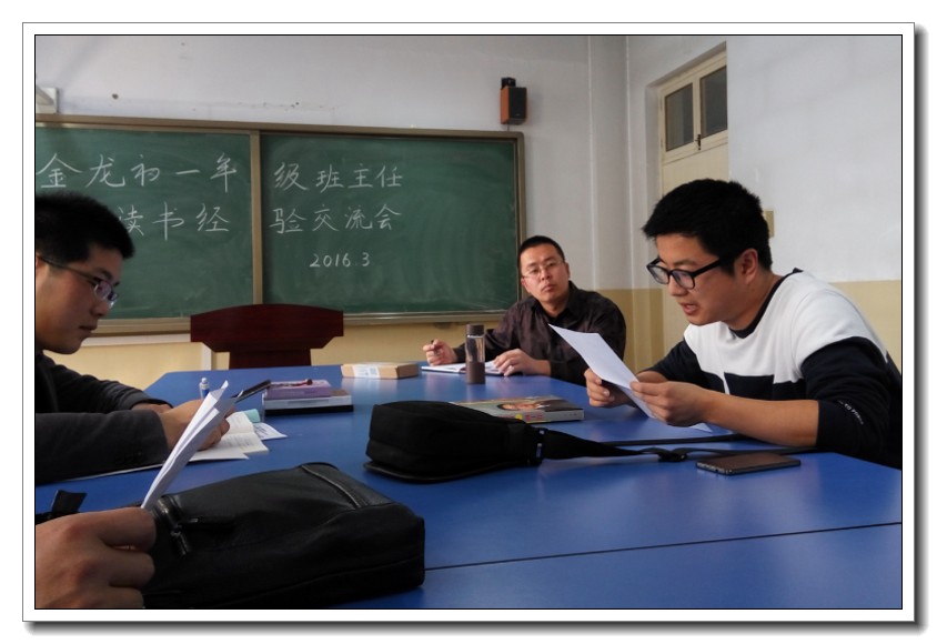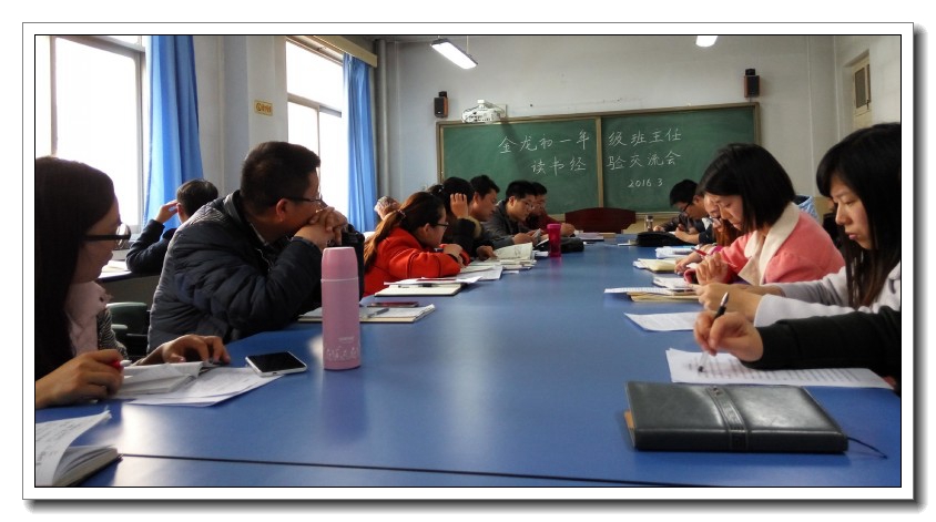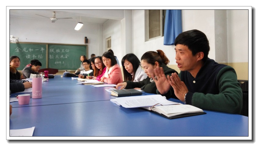 青年教师成长是学校工作的重要内容。继中青年教师“入职经验交流”、“军训经验交流”、“主题班会经验交流”、“家长会经验交流”、“‘导学自主’课堂经验交流”等系列培训后,为全面提高我年级中青年班主任教师职业素养,提升其处理班级日常事务的能力,3月14日下午,金龙初一年级全体级班主任在行政楼211室召开读书经验交流会。