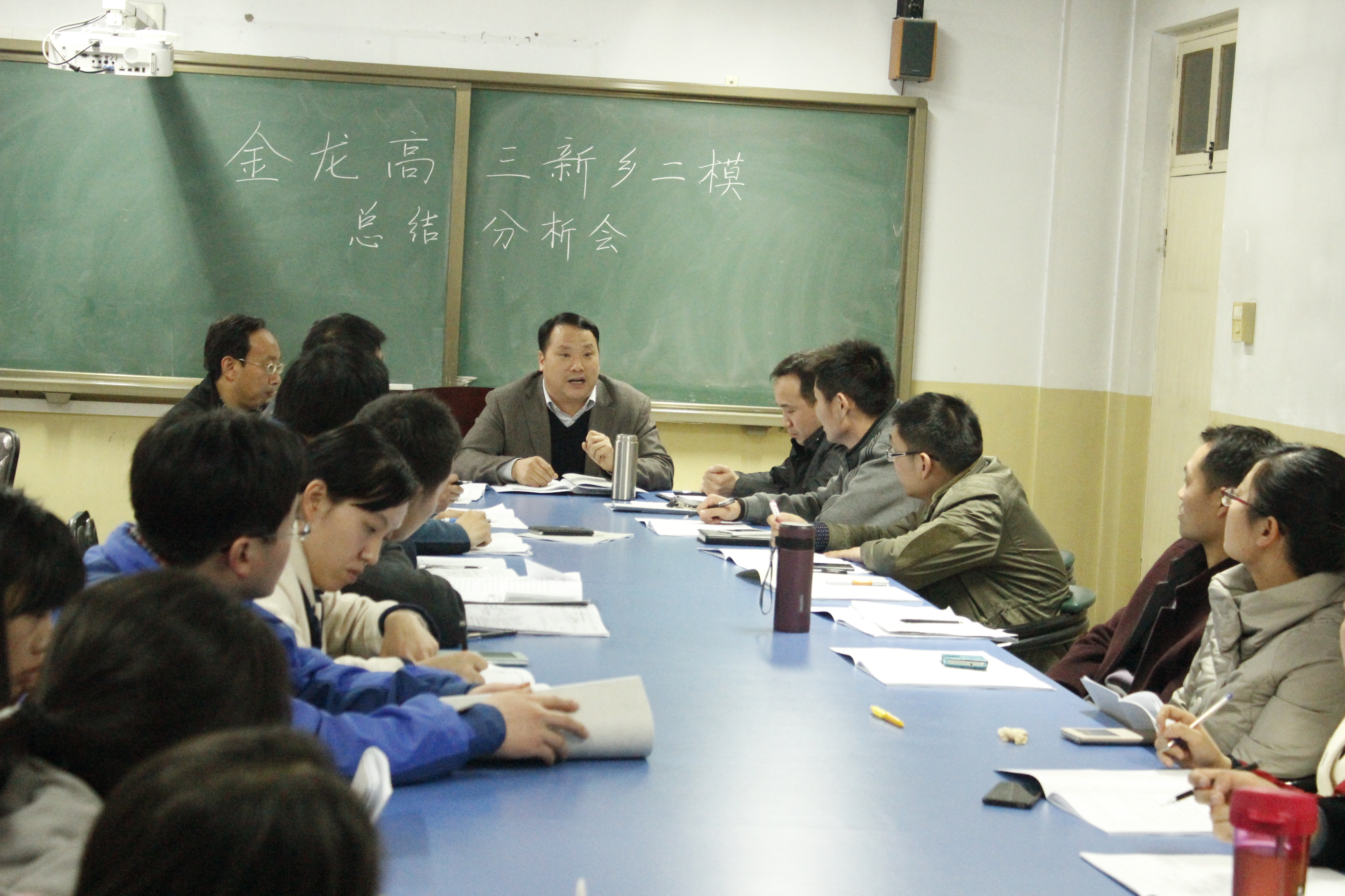 3月22日下午,金龙高三年级在行政楼召开了新乡市二模考试总结分析会。年级部全体教师参加会议,河南师大附中副校长赵振华、金龙教育教学部主任刘新选、副主任郭卫强莅临现场并作出重要指导。