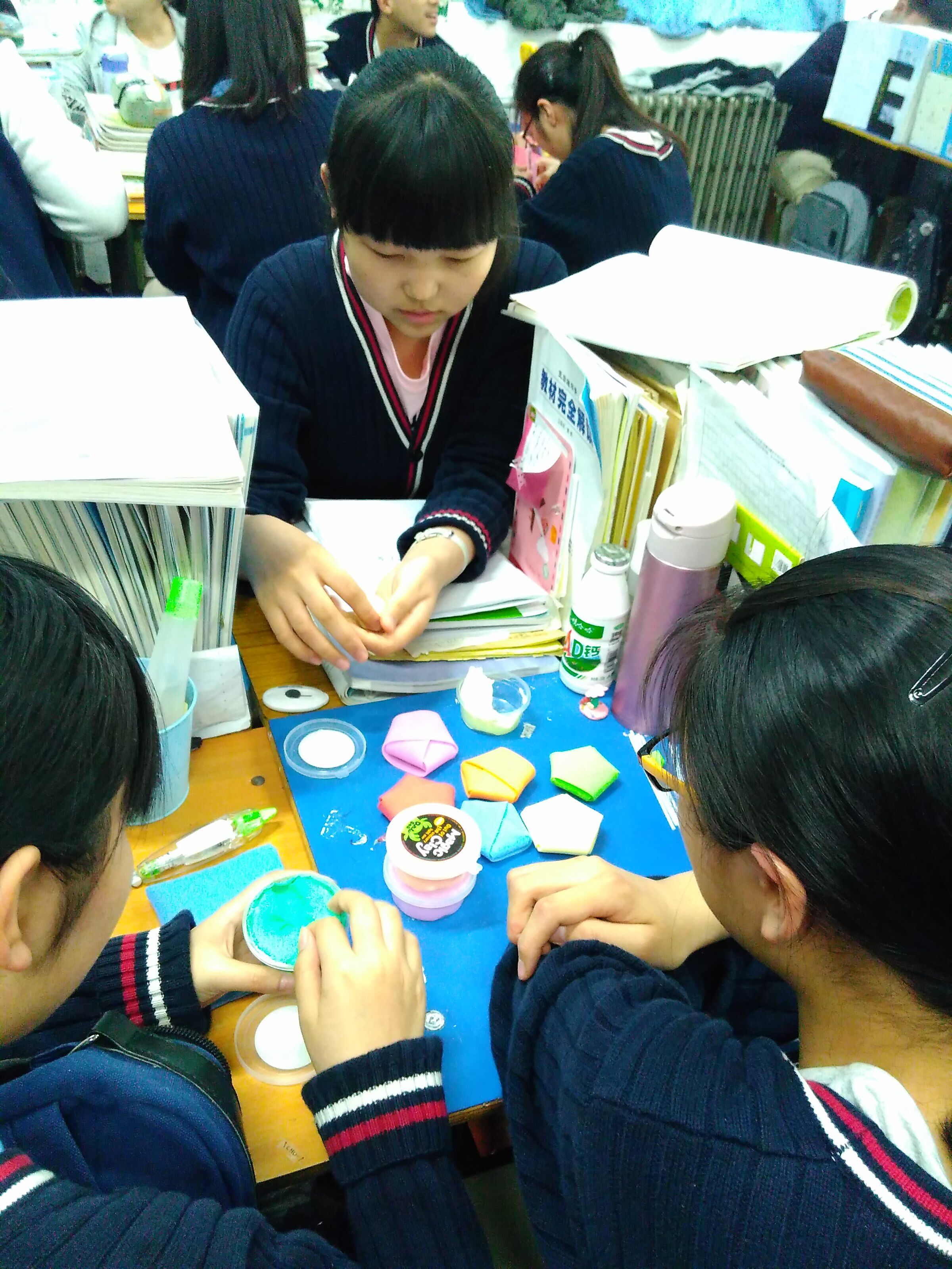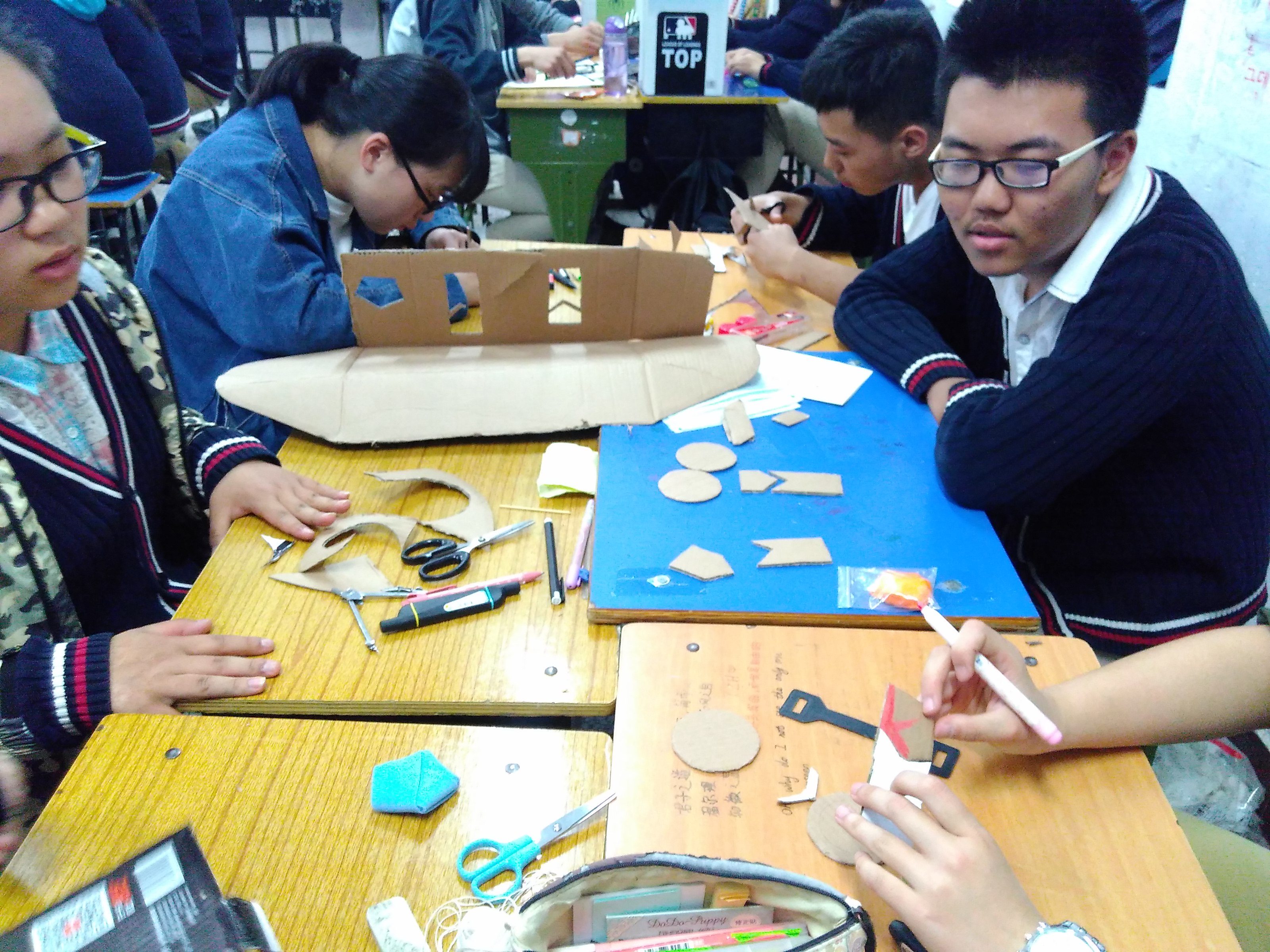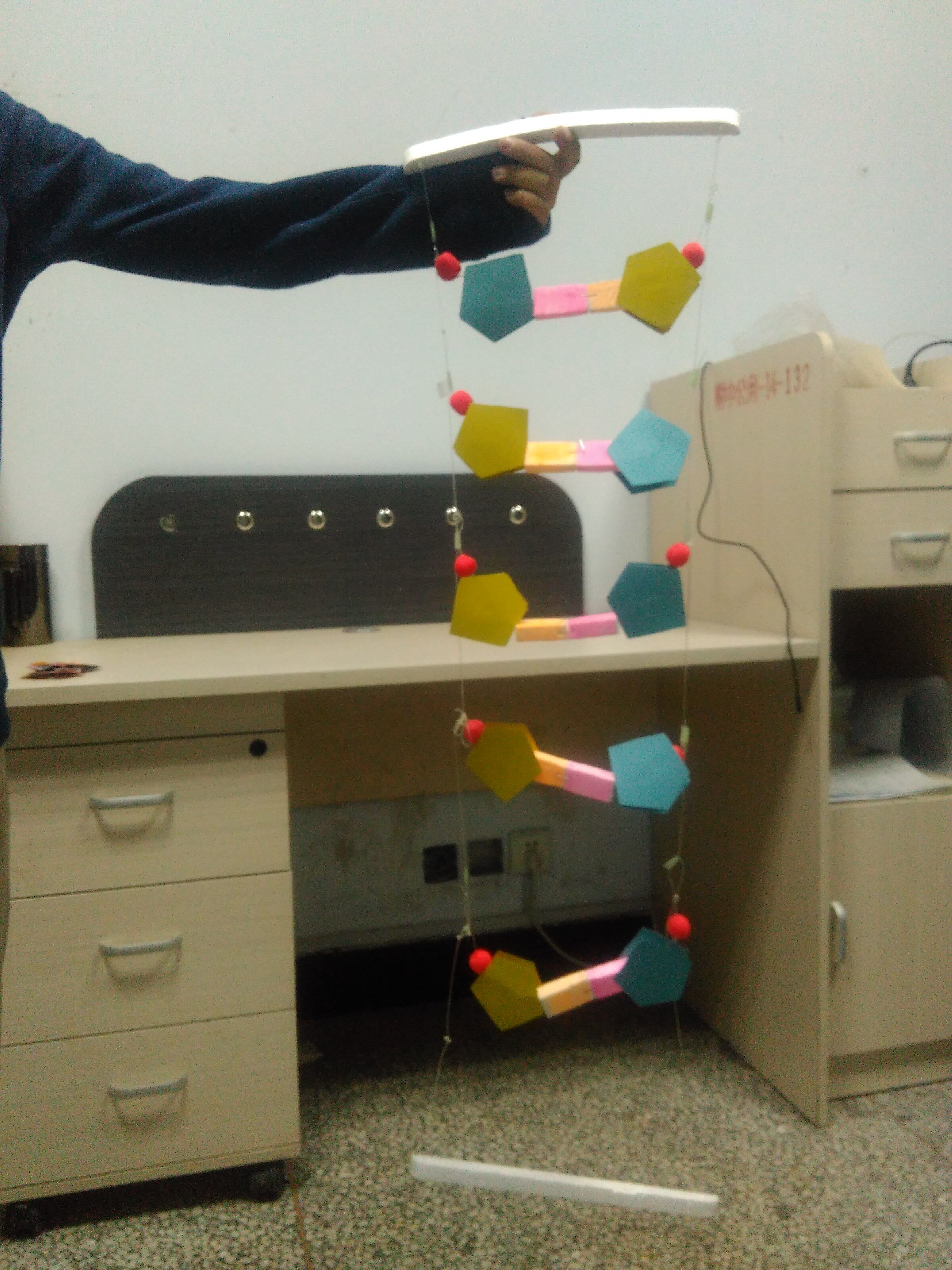 作为国际部主题教学系列活动的一部分,在与学生共同学习高一年级生物学科“DNA分子的结构”一课后,为了让国际部学生更好地理解DNA分子结构,生物组李帅老师利用自习课时间,组织、指导学生亲手制作DNA分子模型。此次动手实践活动,既激发了学生的学习兴趣,又加深了学生对所学知识的理解,有利于进一步提高学生的动手实践能力和团队协作能力。国际部高一年级学生有着丰富的创造力以及较强的动手能力,在制作DNA分子模型的过程中,同学们兴致高昂,全心投入,富有创造力地在制作实践过程中对所学知识进行迁移,把书本知识转变为实践技能。 DNA分子是由脱氧核苷酸组成的反向平行的双链结构,其中脱氧核苷酸分子由磷酸、脱氧核糖和碱基按照一定结构和次序组成。学生在制作时,深入思考如何将这三种分子连接成脱氧核苷酸、脱氧核苷酸及如何形成长链等一系列问题,无形中加深了对DNA结构的理解。 制作过程中,同学们以组为单位进行分工合作,每5-6名学生分为一组,选材、制作、分工均由各小组自主安排。在动手制作前,同学们认真对照课本观察DNA的结构,然后组内同学进行进行分工,利用本组提前准备的材料制作不同的小分子,利用集体智慧思考、探讨如何将这些小分子稳固连接等问题。着手制作后,有些小组充分考虑到环保节约的需要,充分进行废物利用,以废弃的纸箱或者泡沫板为主要实验材料进行制作;有些小组则利用橡皮泥或者彩色卡纸进行制作。在制作过程的各个环节,同学们热情高涨、积极合作,在学会知识的同时也发挥了团队的智慧和力量,充分认识了合理的分工与合作对整个团队的重要意义。