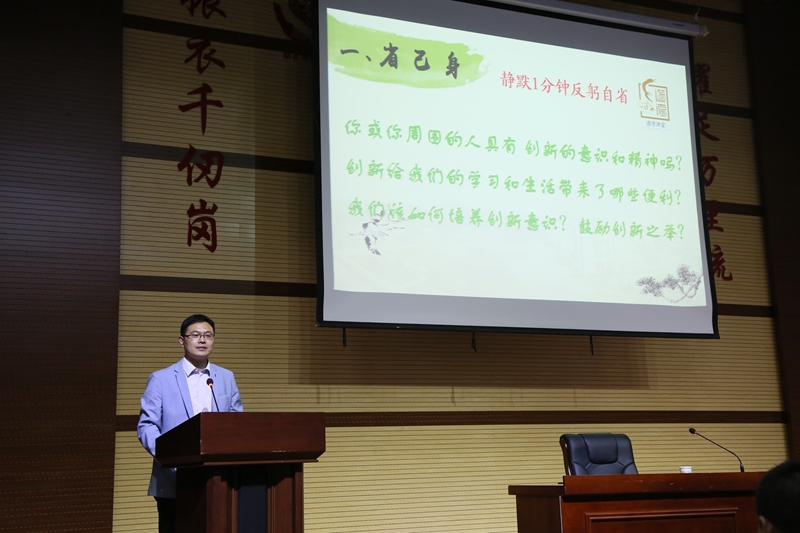 在省己身环节,全体师生针对以下三个问题进行思考:“你和你周围的人具有创新的意识和精神吗?创新给我们的学习和生活带来了哪些便利?我们该如何培养创新意识?鼓励创新之举?”同学们进行了一分钟的静默反省。然后,全体师生齐声歌唱《公民道德歌》, “道德重如山,道德贵似金,人生道路上有德才能行”,大家在嘹亮的歌声中得到了精神上的洗礼。