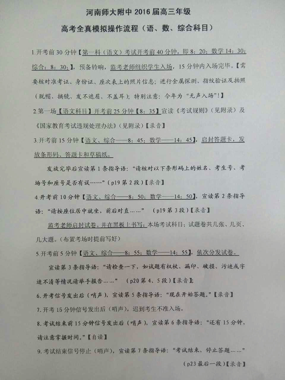 结合16日、17日的天一联考,金龙高三年级与本部高三年级联合举行了高考全真模拟考试,以使学生们熟悉高考环境。本次考试参照高考考试流程,制定考务细则,完全执行高考考试纪律。各班班主任在考试前组织本班学生认真学习考试纪律,熟悉考试流程。在考前动员会上,各班主任还针对今年高考新政策尤其是“无声入场”做了详细阐释,有效消除了学生的紧张心理。