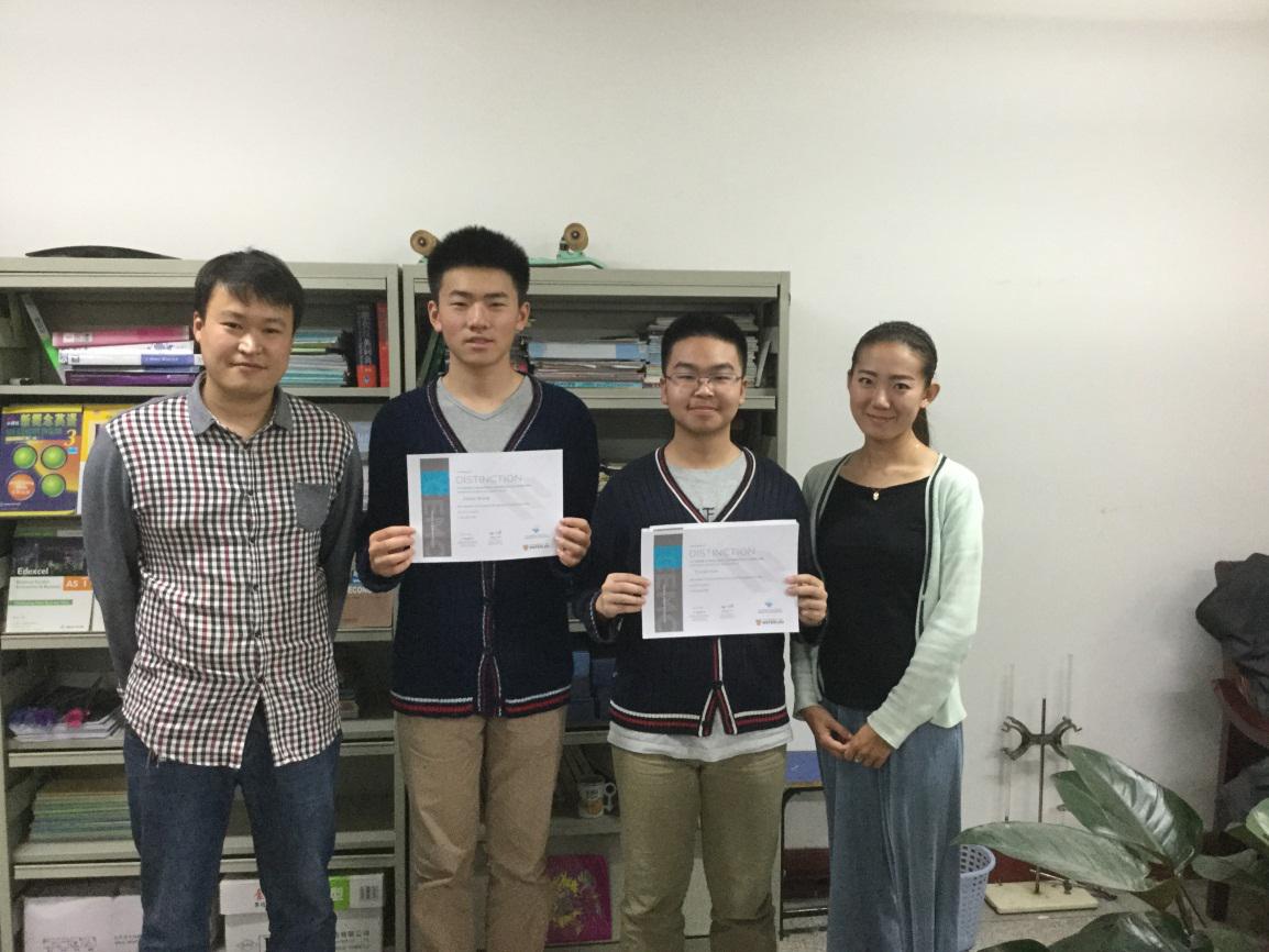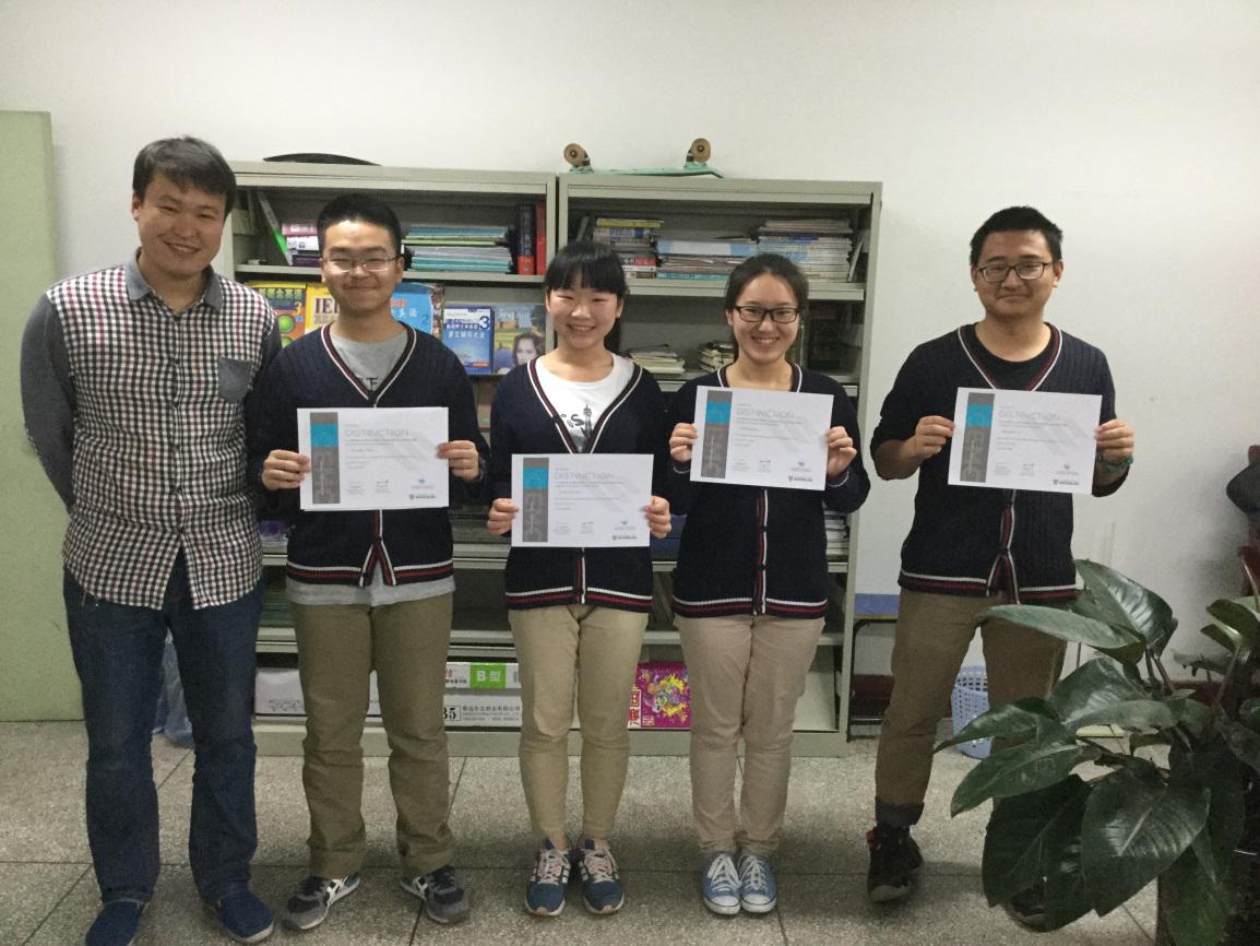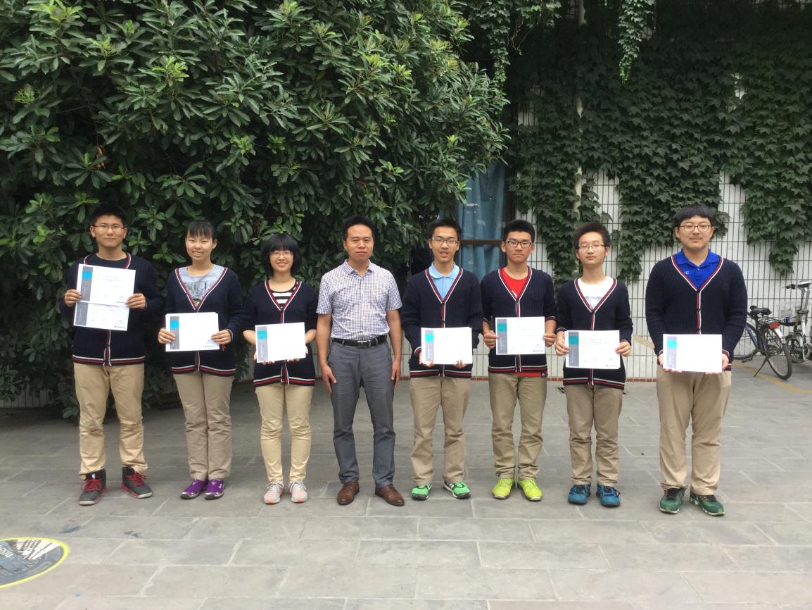 高一年级26人参加的Cayley竞赛中最终有8人获得Top twenty-five percent of contestants(全球最好25%参赛者)的认证;19人参加的Galois竞赛中最终有5人获得Top twenty-five percent of contestants的认证。而河南师大附中取得了学校团体全球排名(2016 Galois Contest Team Honour Rolls International)46名的成绩。