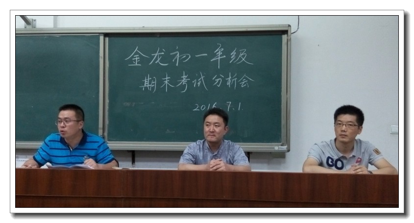 7月1日下午,金龙初一年级在一号楼一楼半召开期末考试成绩分析会,此次会议目的是对期末成绩进行分析评价,总结反思初一整个学年教育教学工作,并对初二年级的工作做出设想展望。金龙初中教育教学部副主任都温中及初一年级全体教师参加会议。会议由年级主任郭学明主持。
