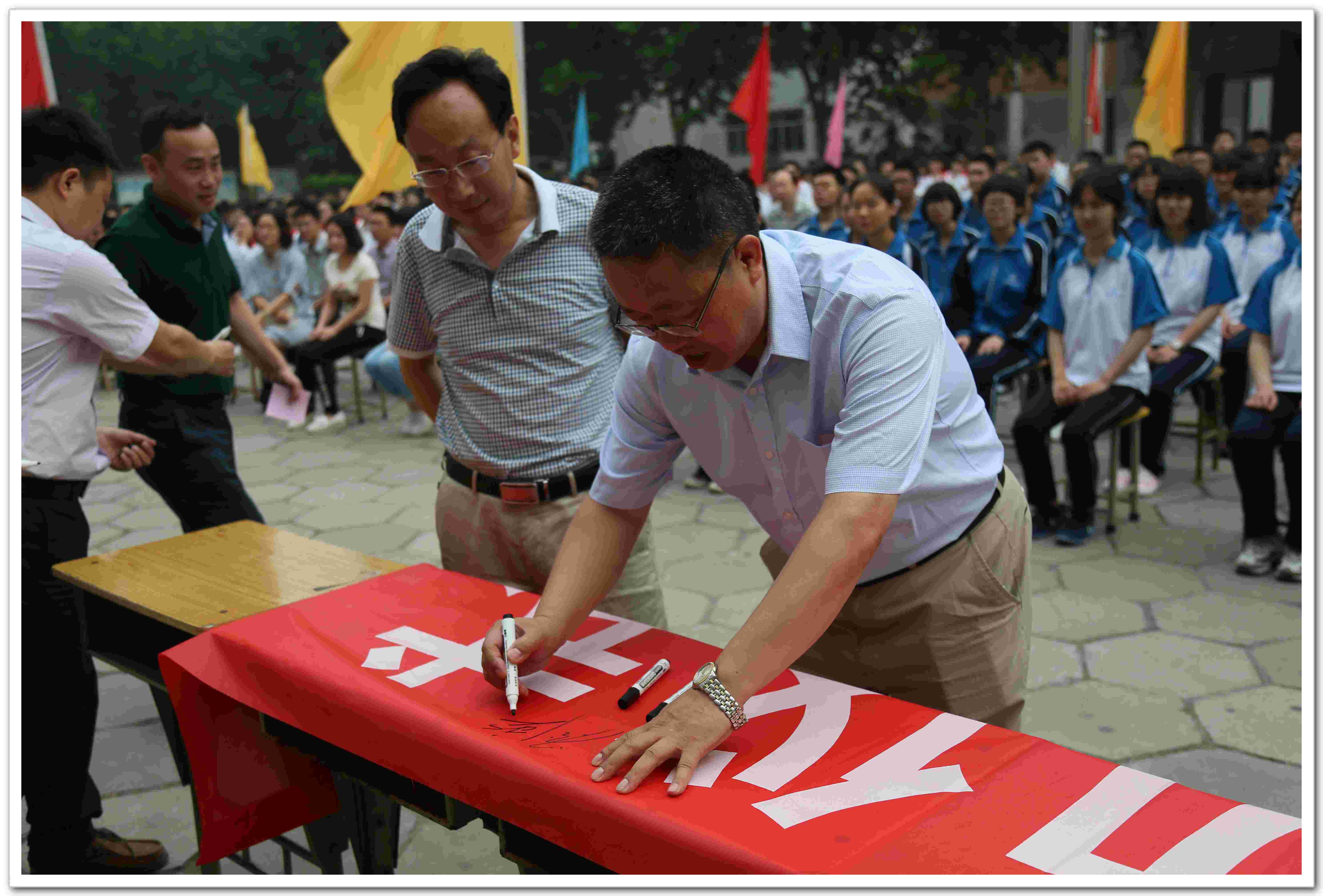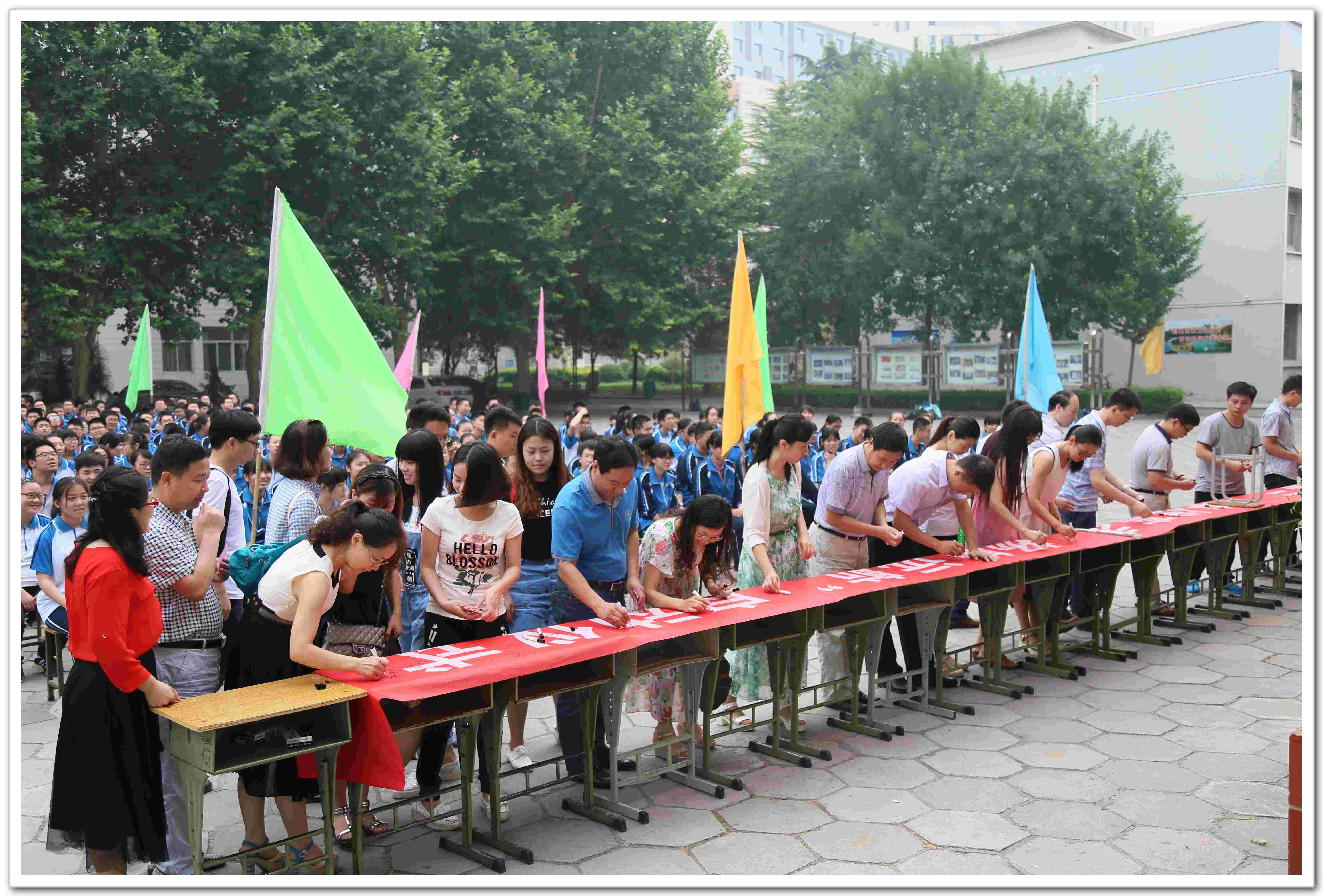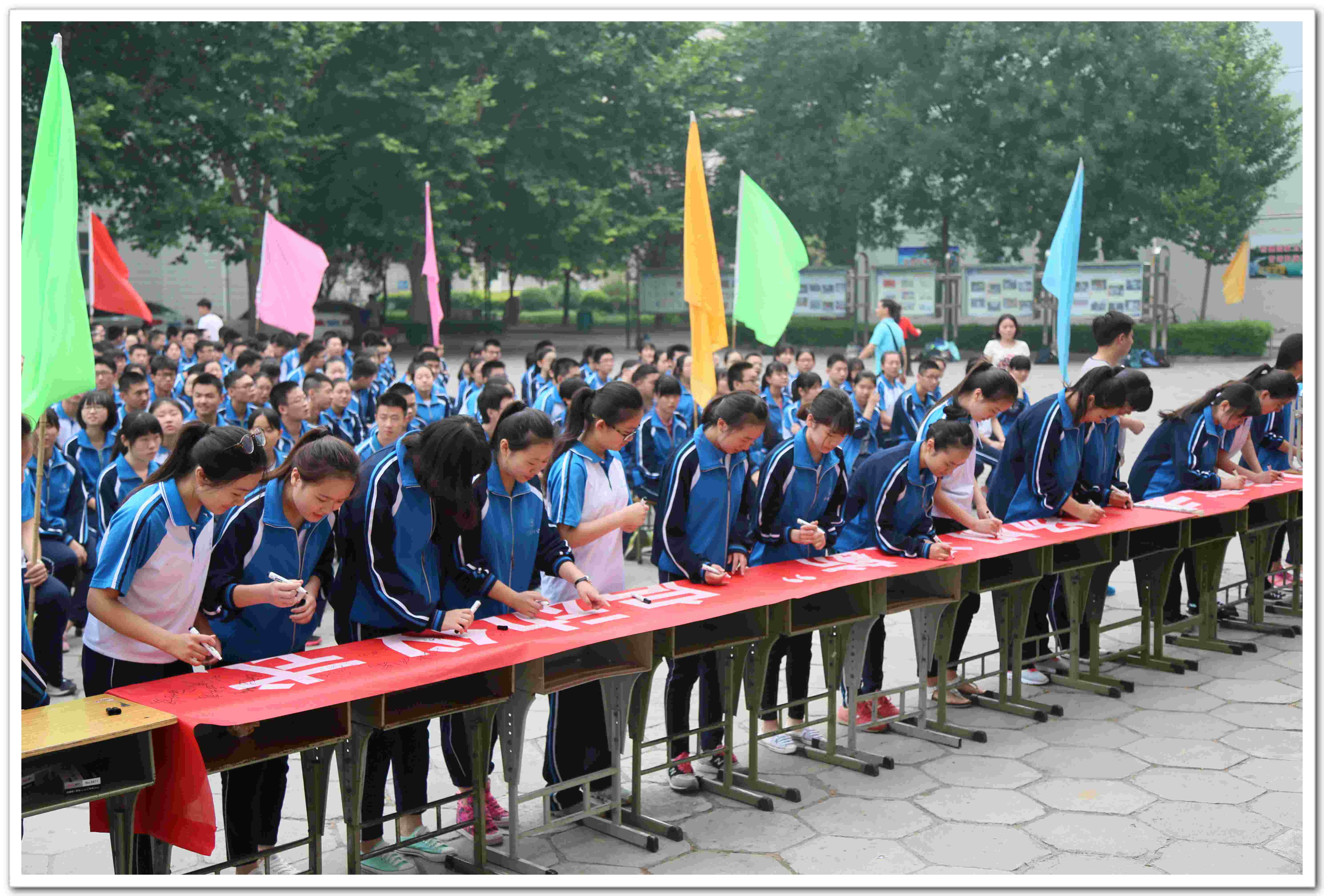 拼一年青春,留一生无悔。在《年轻的战场》歌声中,全体师生非常庄严而郑重的在红色条幅上签名留念,表达了2017届高三全体师生乘风破浪,沧海永济的决心与信心!